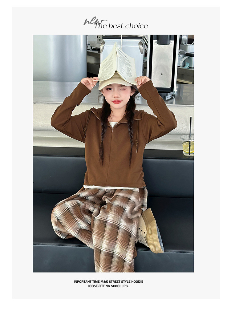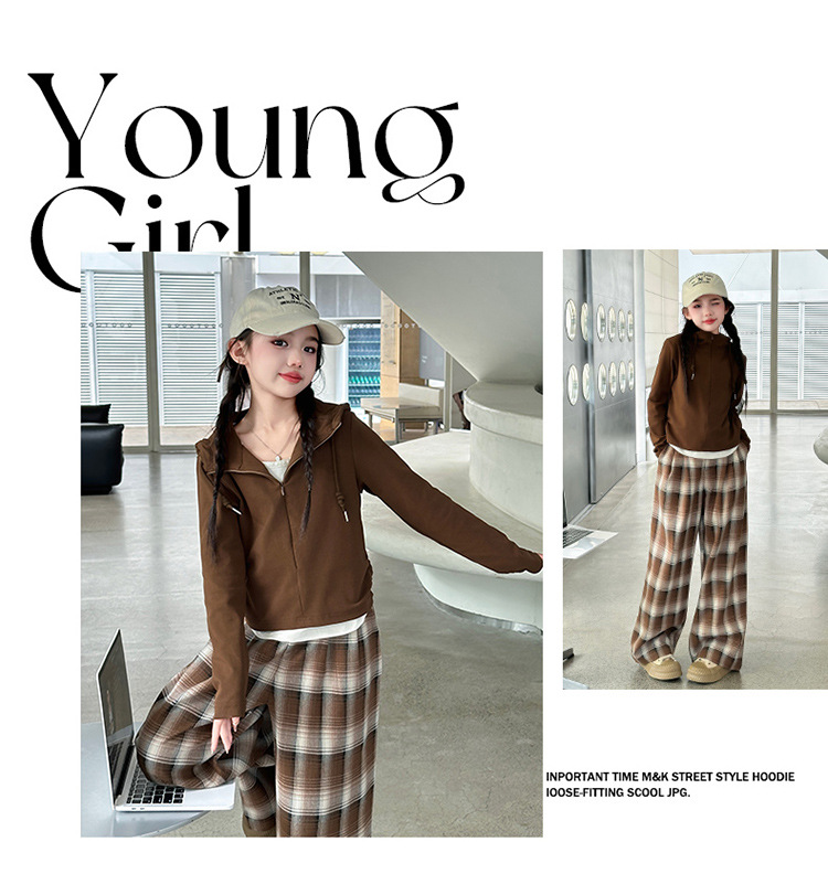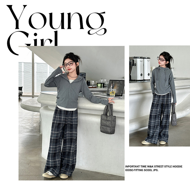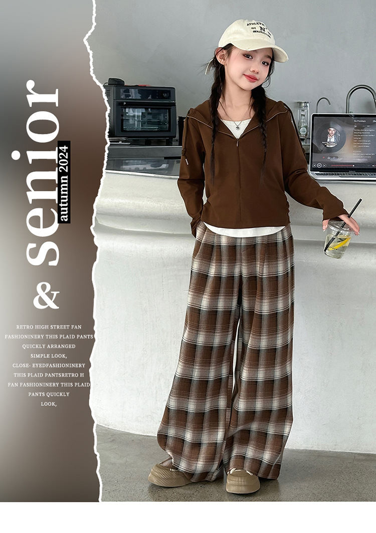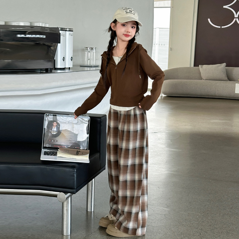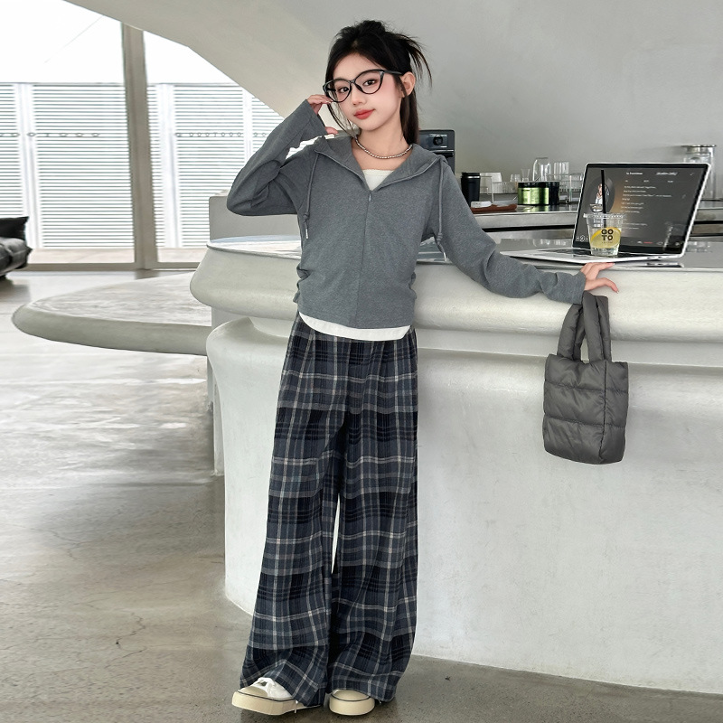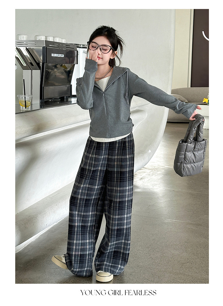 여아 가을 의류 세트 2025 신상 스타일리시 여아 봄 가을 니트 재킷 어린이 체크무늬 와이드 팬츠