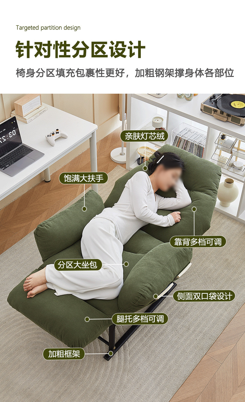 • [피부 친화적인 코듀로이] 다크그린 + 발판 + 팔걸이 가격조절
