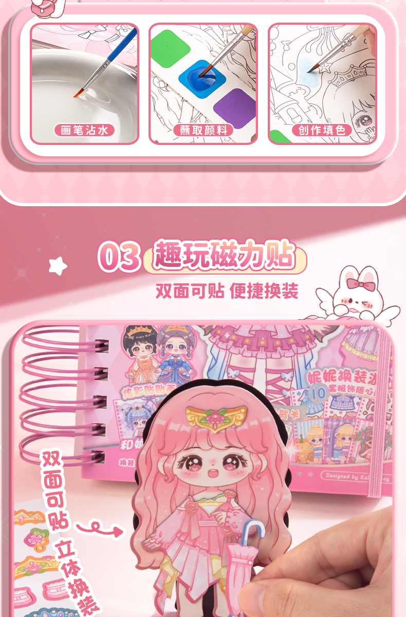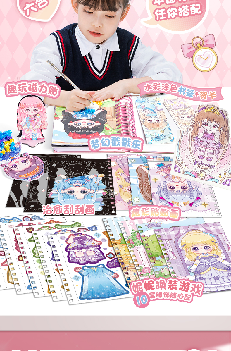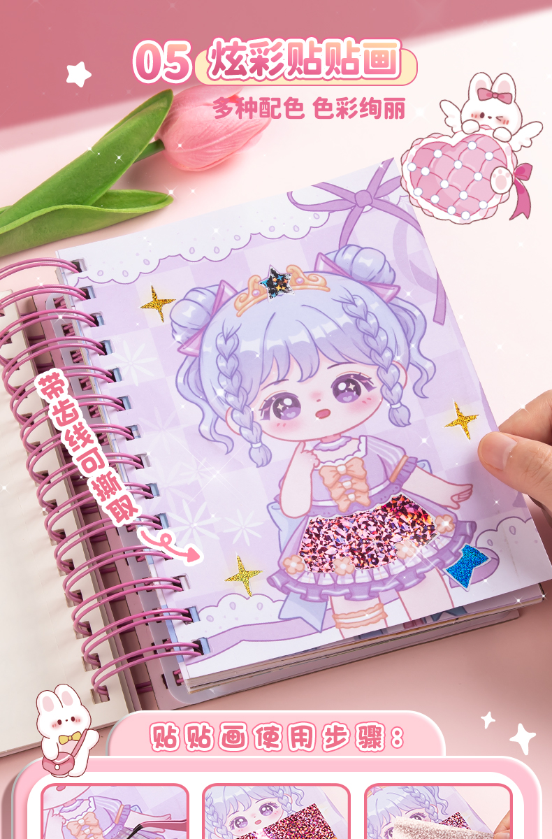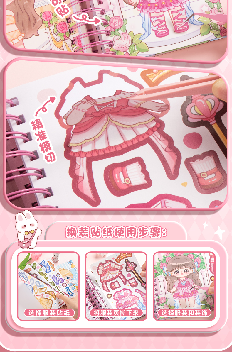 [6 가지 놀이 방법] 아름다운 공주 원피스 스티커 책 소녀 어린이 3 ~ 6 세 DIY 수제 스티커 변경