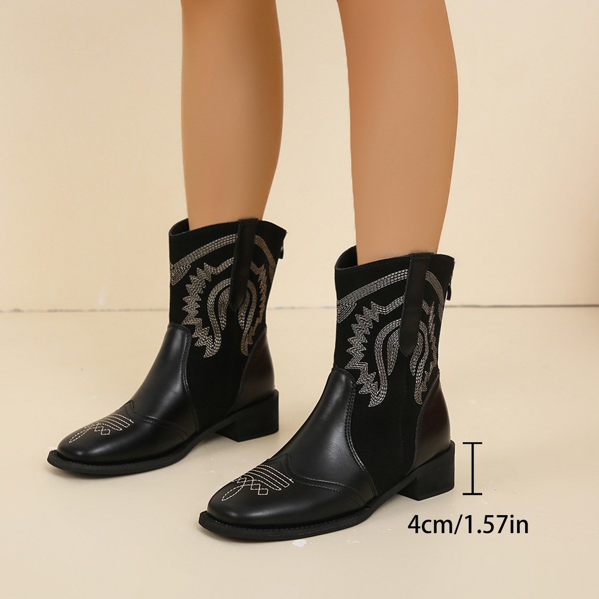 레트로 스퀘어 헤드 수 놓은 웨스턴 부츠 여성 국경 간 플러스 사이즈 2024 년 가을과 겨울 대외 무역 부츠