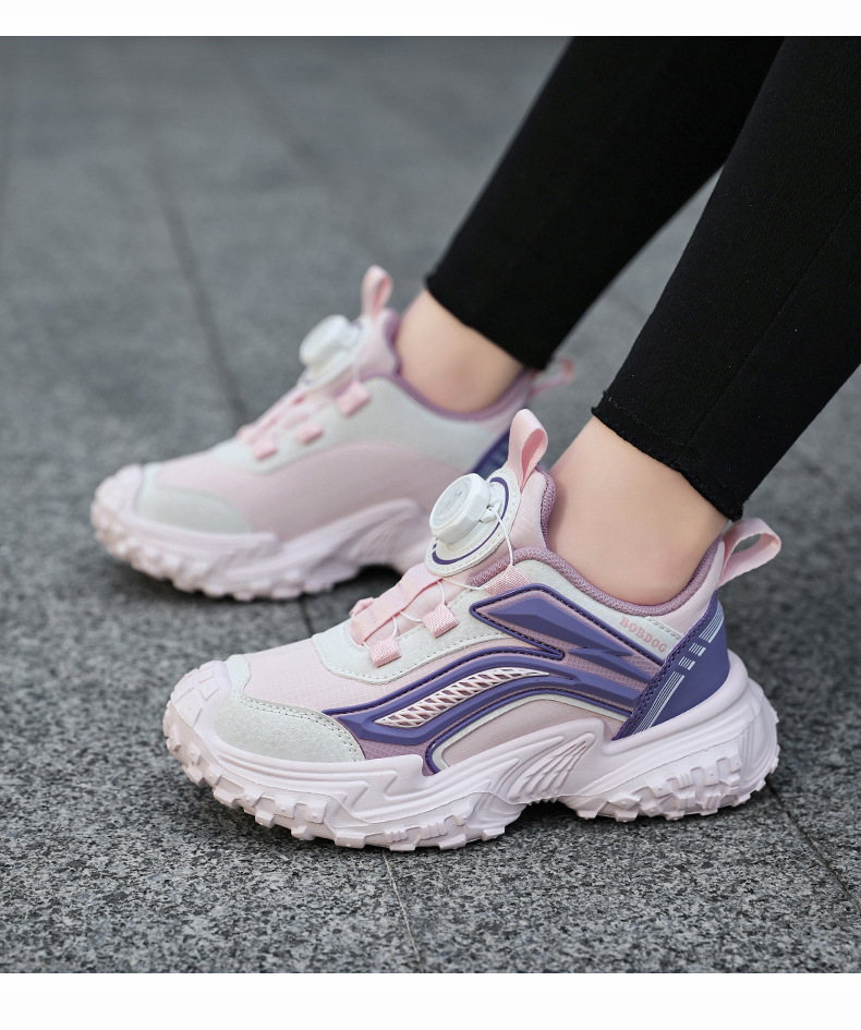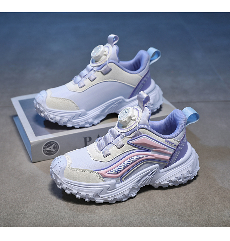 Babudou 소녀 신발 가을 어린이 통기성 가죽 스포츠 신발 소녀 회전 버클 운동화 학생 캐주얼 신발