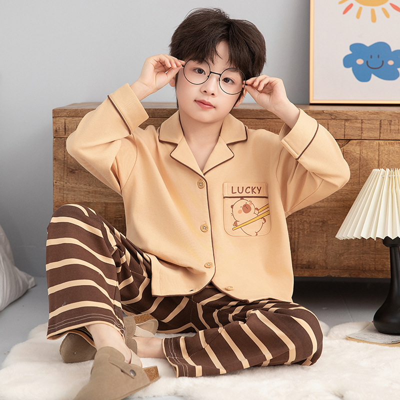 2025년 신상 남아 여아 잠옷, 봄 가을 아동용 남아 긴팔 가을 스타일, 여아 가디건 홈웨어 세트스토어 가기