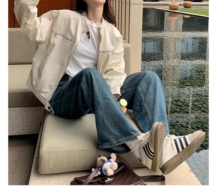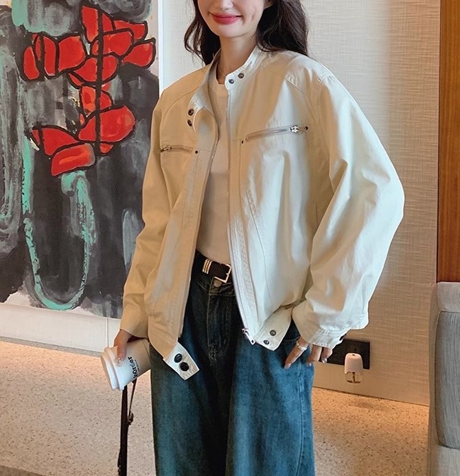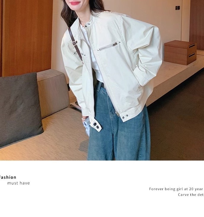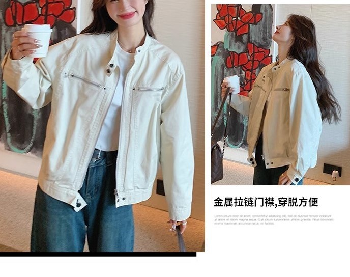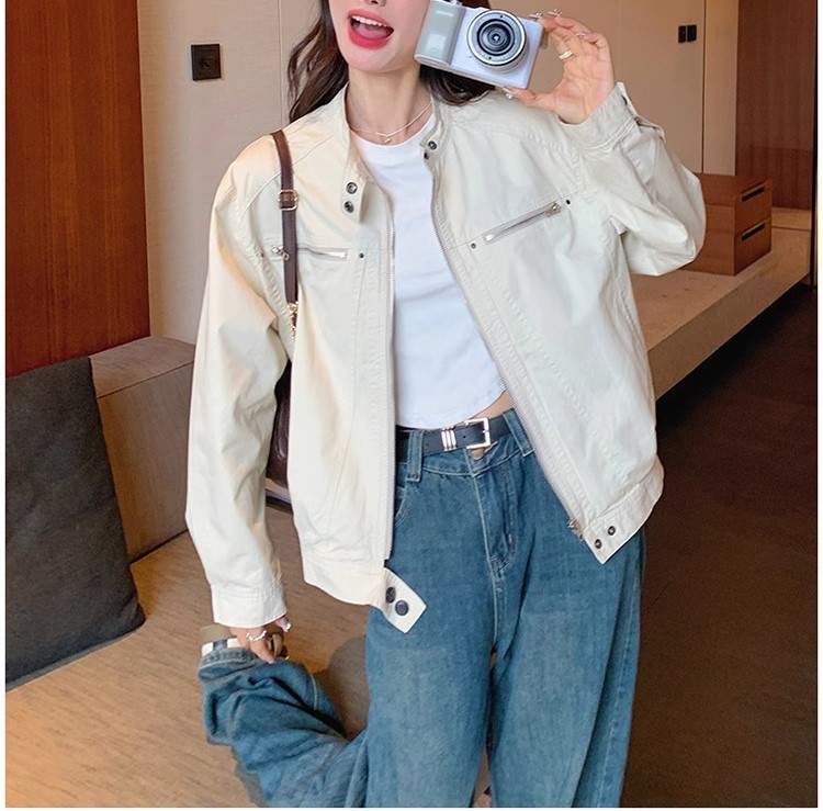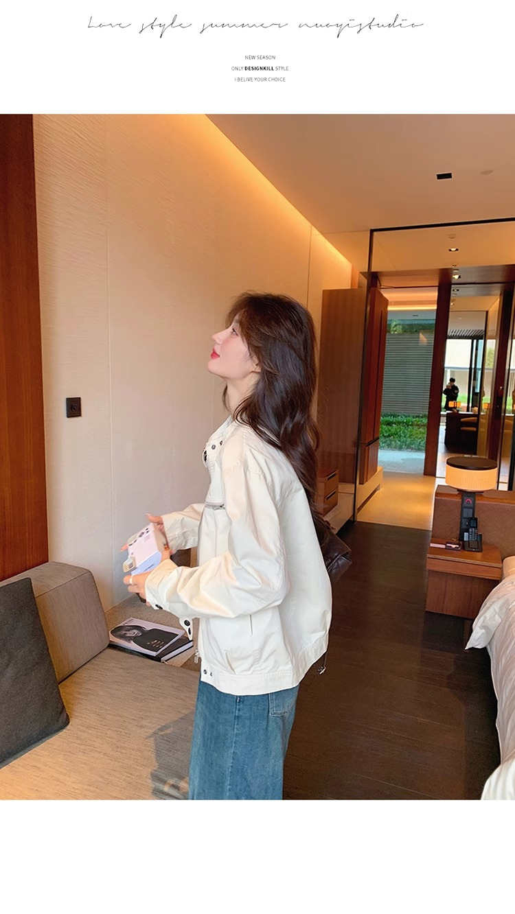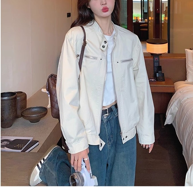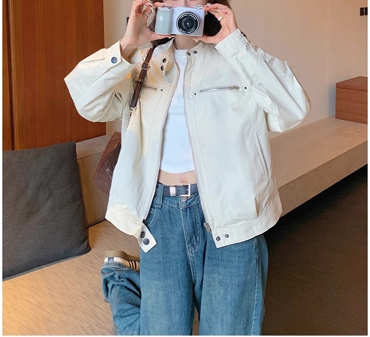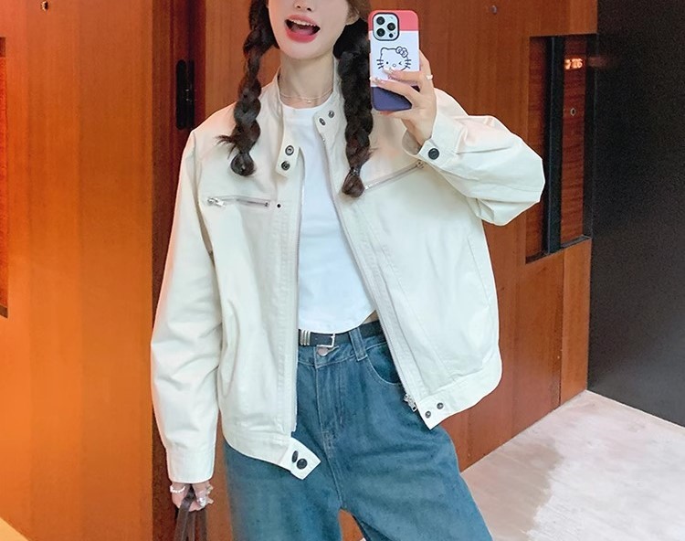2024 년 봄과 가을 새로운 폭발 여성 작업복 짧은 코트 미국 복고풍 여성 화이트 재킷 탑스토어 가기