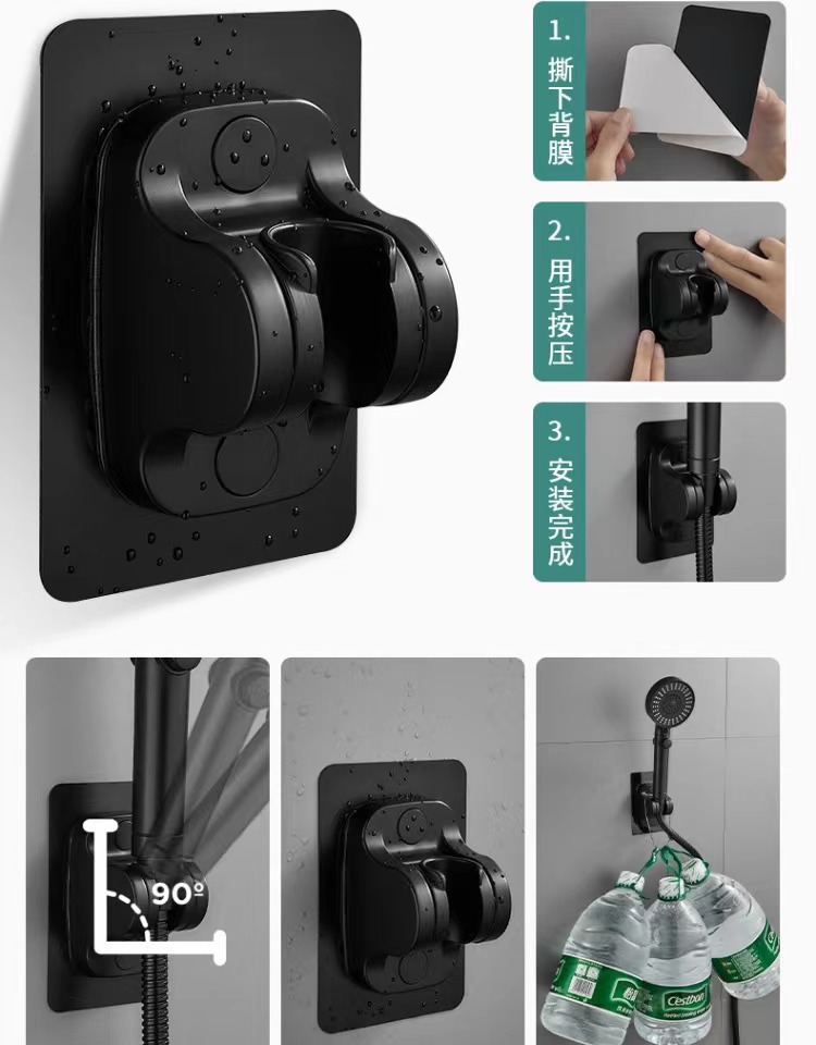 • [3종 샤워헤드 세트] 라지 디스크 블랙 5스톱 샤워기 + 블랙 1.5m 호스 + 베이스