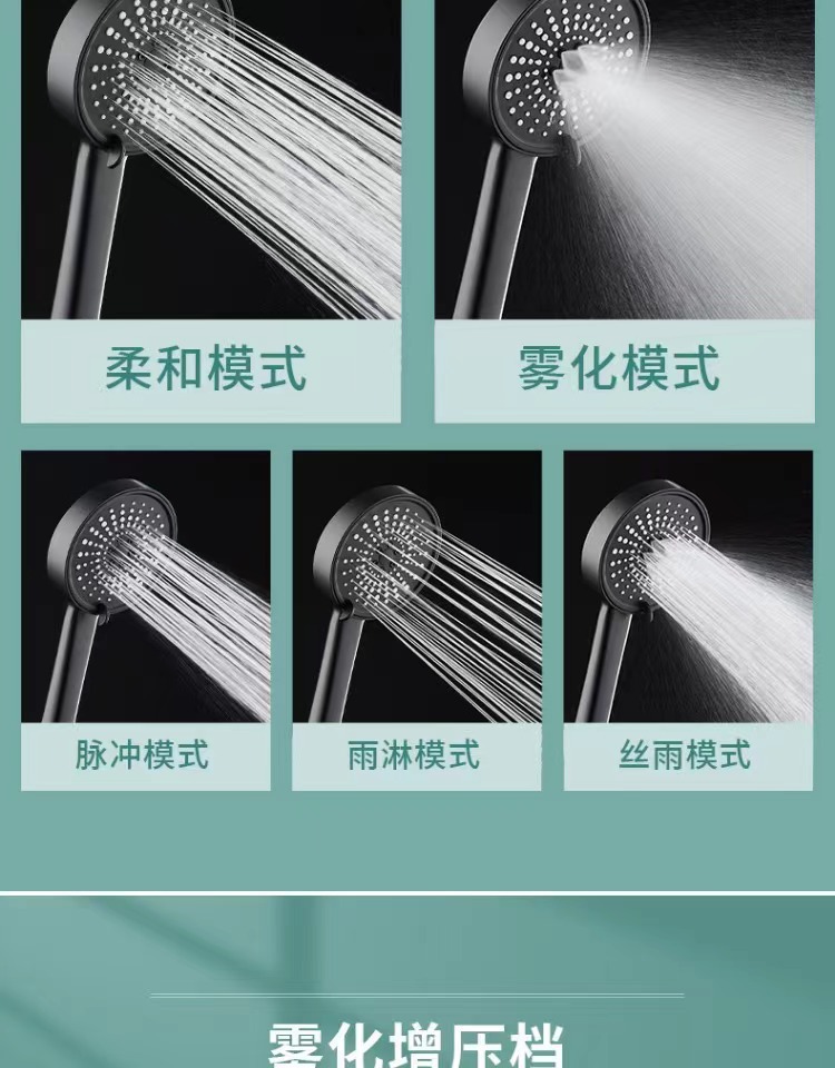 가압 샤워 헤드 가정용 욕실 화장실 비 샤워 수도꼭지 압축 5 단 샤워 세트