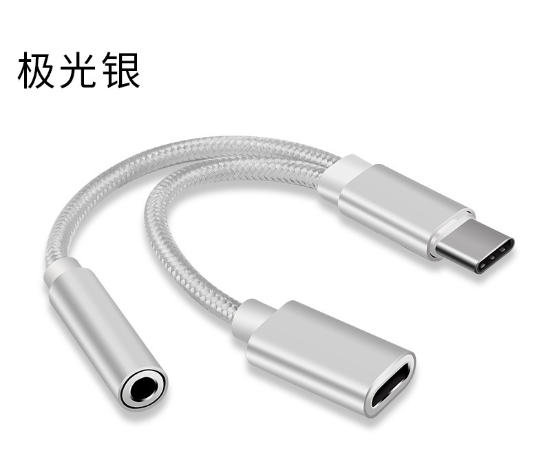 유형 c 2-in -1 꼰 오디오 어댑터 3.5mm 이어폰 안드로이드 폰 AUX 충전 어댑터