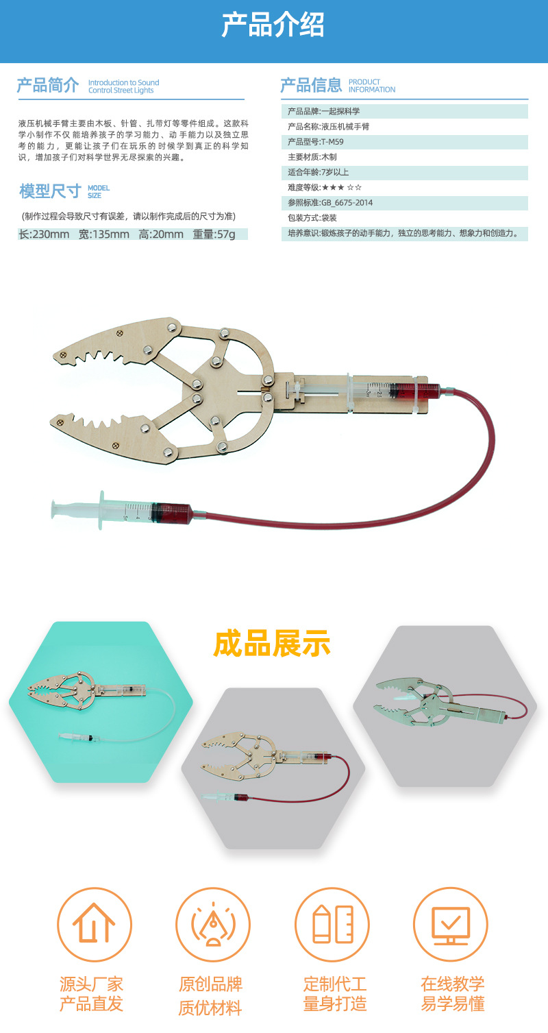 유압 조작기 기술 소형 수제 DIY 조립 모델 과학 실험 과학 교육 어린이 교육 완구스토어 가기