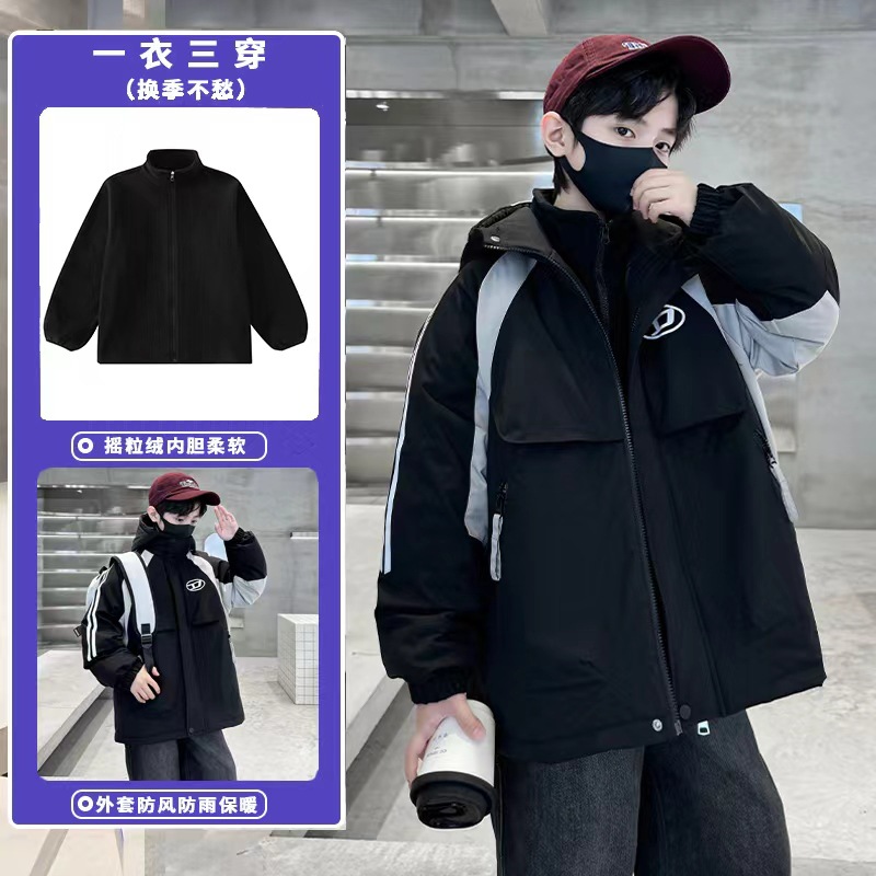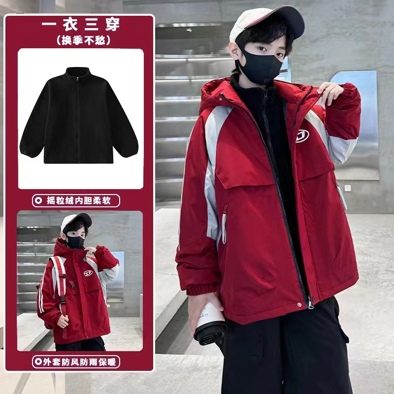 소년 러시 옷 3 대 1 분리 가능한 봄과 가을 2024 새로운 어린이 가을 코트 가을과 겨울