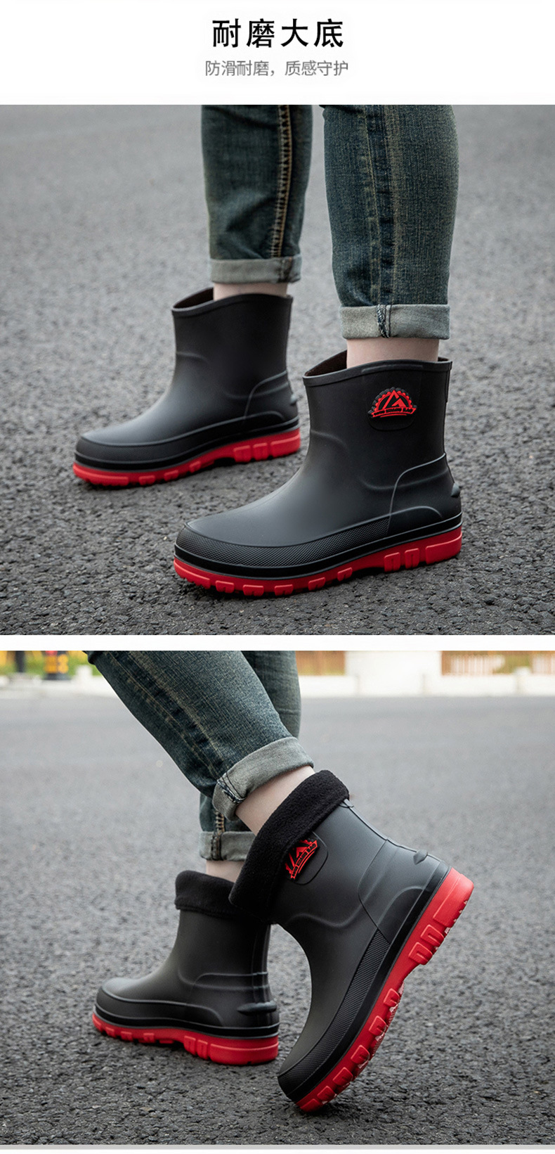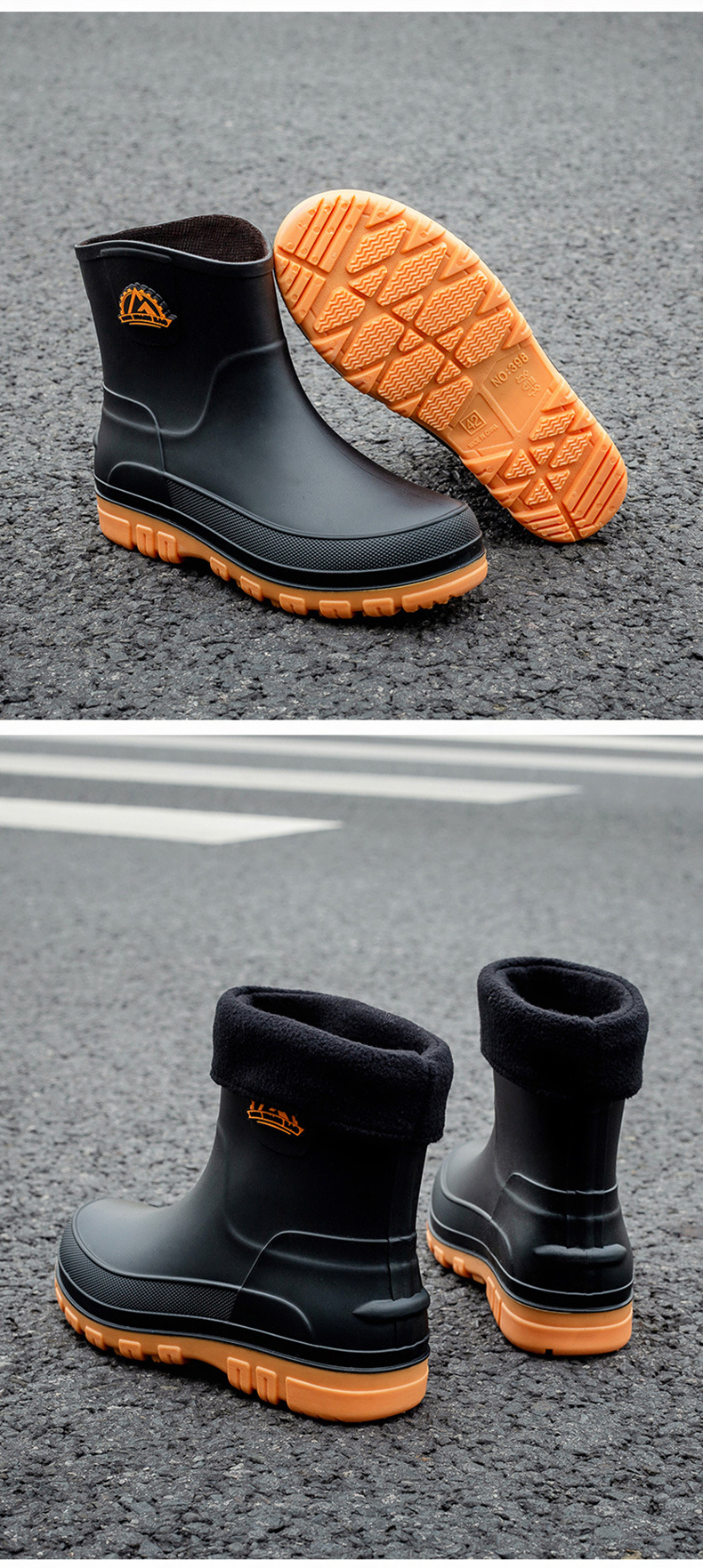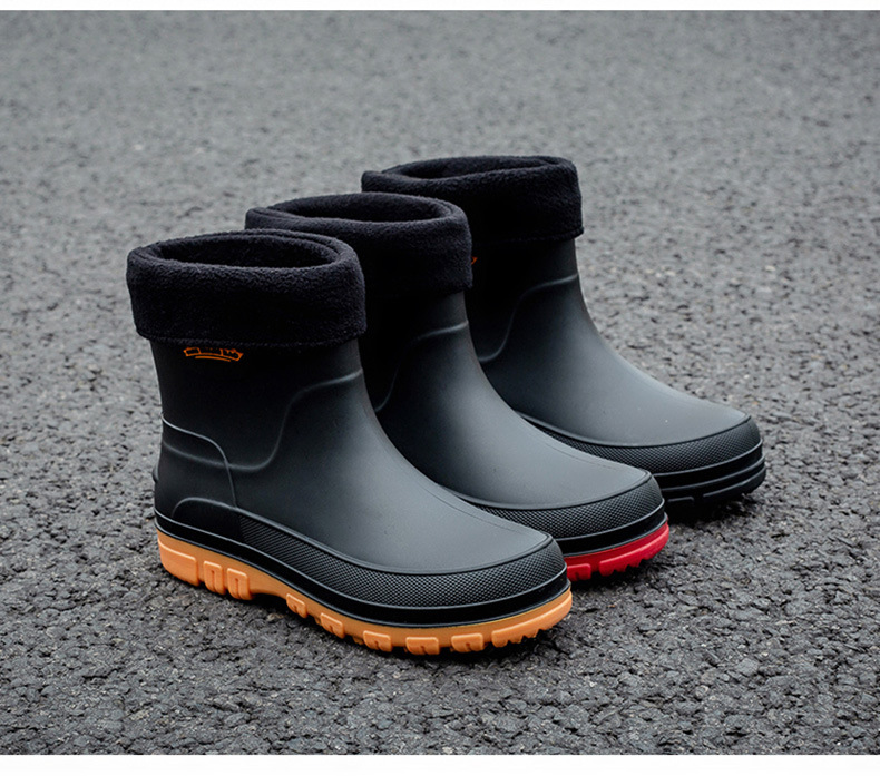 국경 간 방수 신발 남성 비 신발 패션 두꺼운 따뜻한 고무 신발 작업 미끄럼 방지 낚시 주방 장화 도매