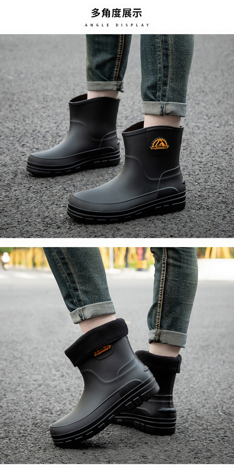 국경 간 방수 신발 남성 비 신발 패션 두꺼운 따뜻한 고무 신발 작업 미끄럼 방지 낚시 주방 장화 도매스토어 가기