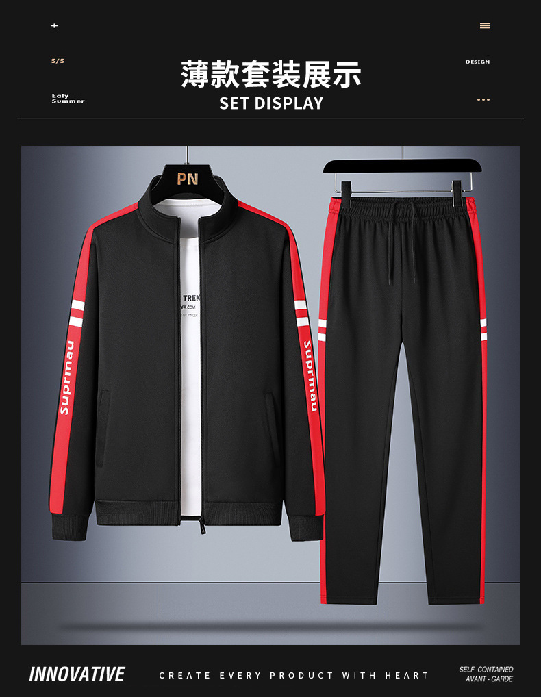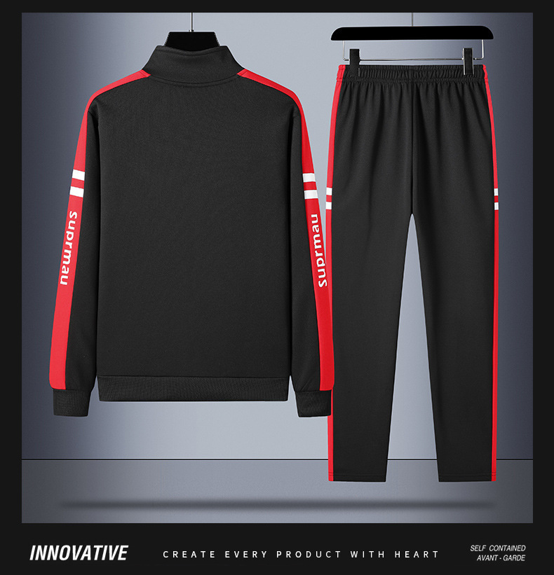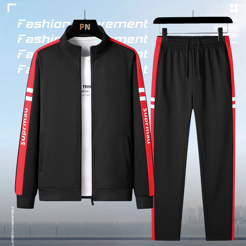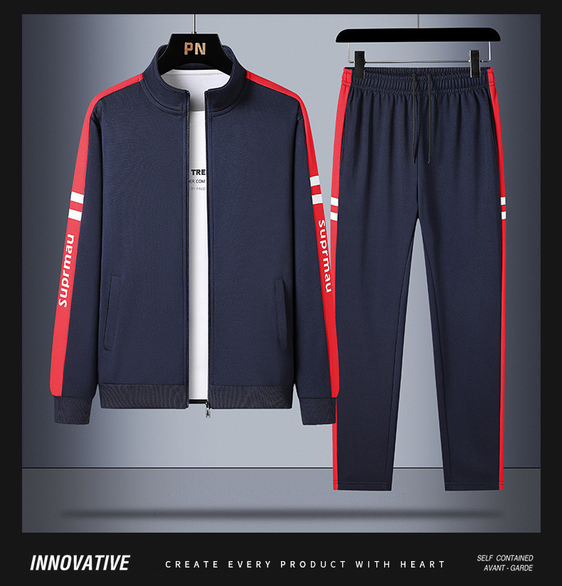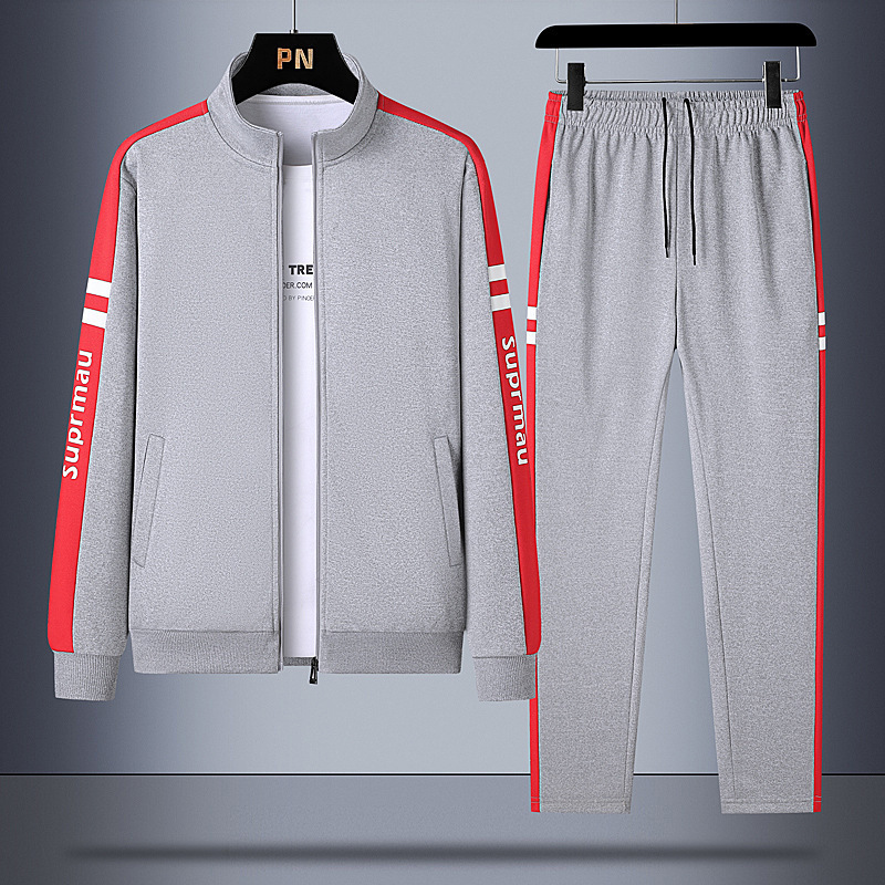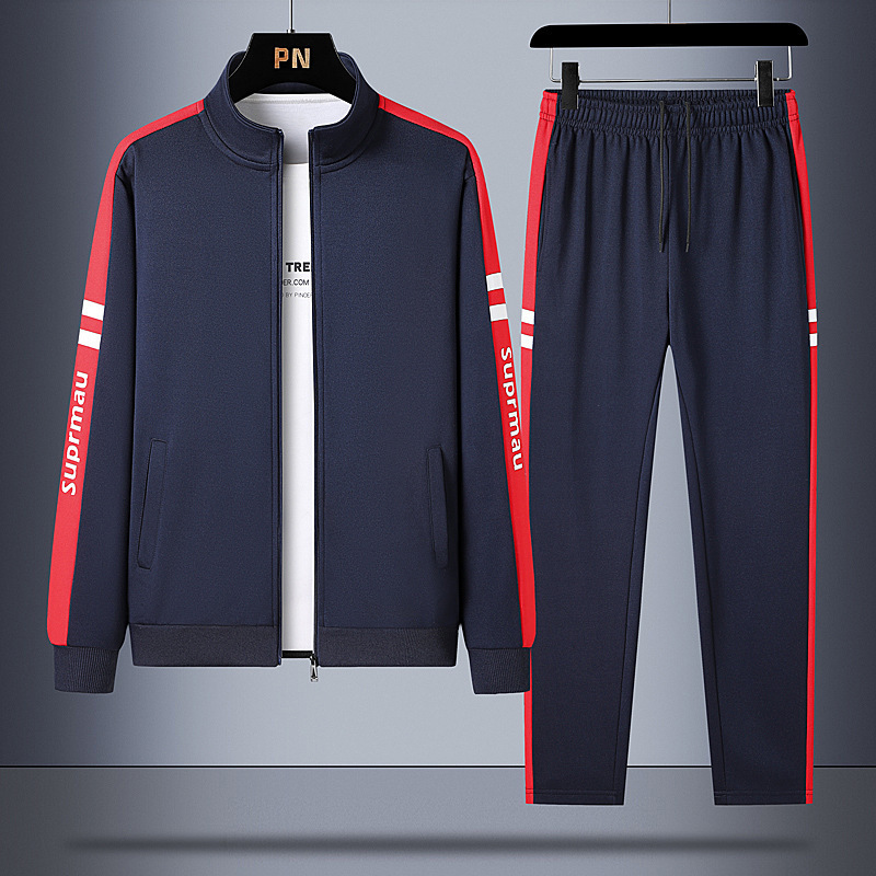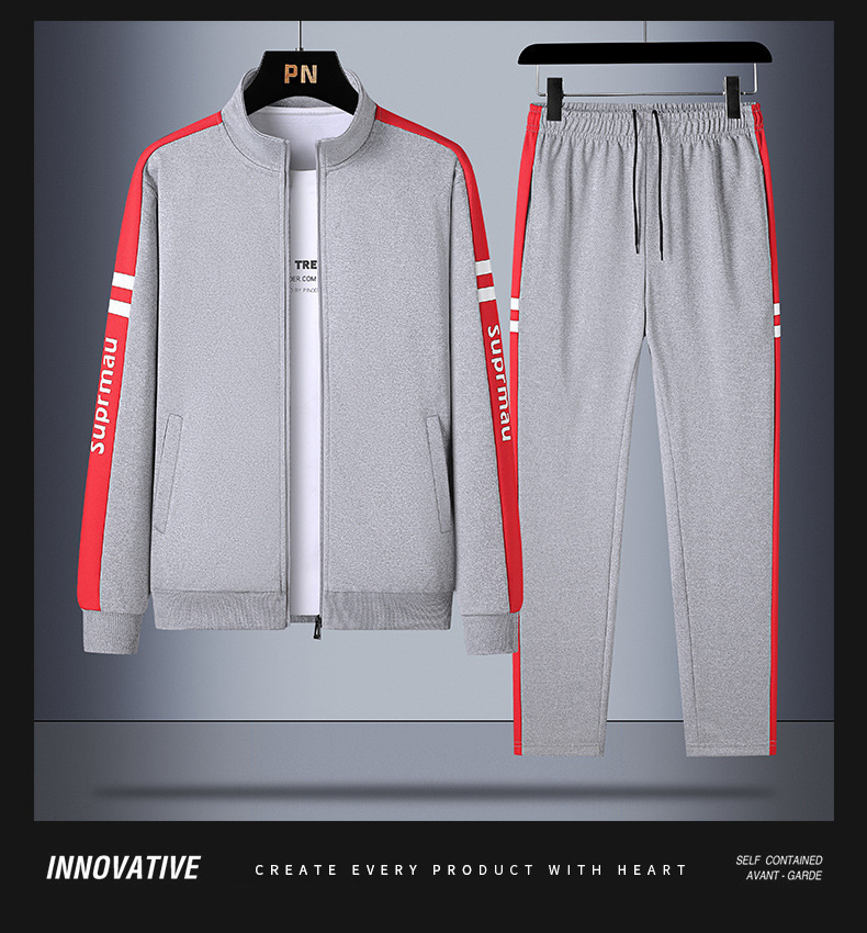 플러스 사이즈 캐주얼 스포츠 세트 2 조각 봄 및 가을 뚱뚱한 남자 운동복 카디건 스트레치 통기성 바지 세트