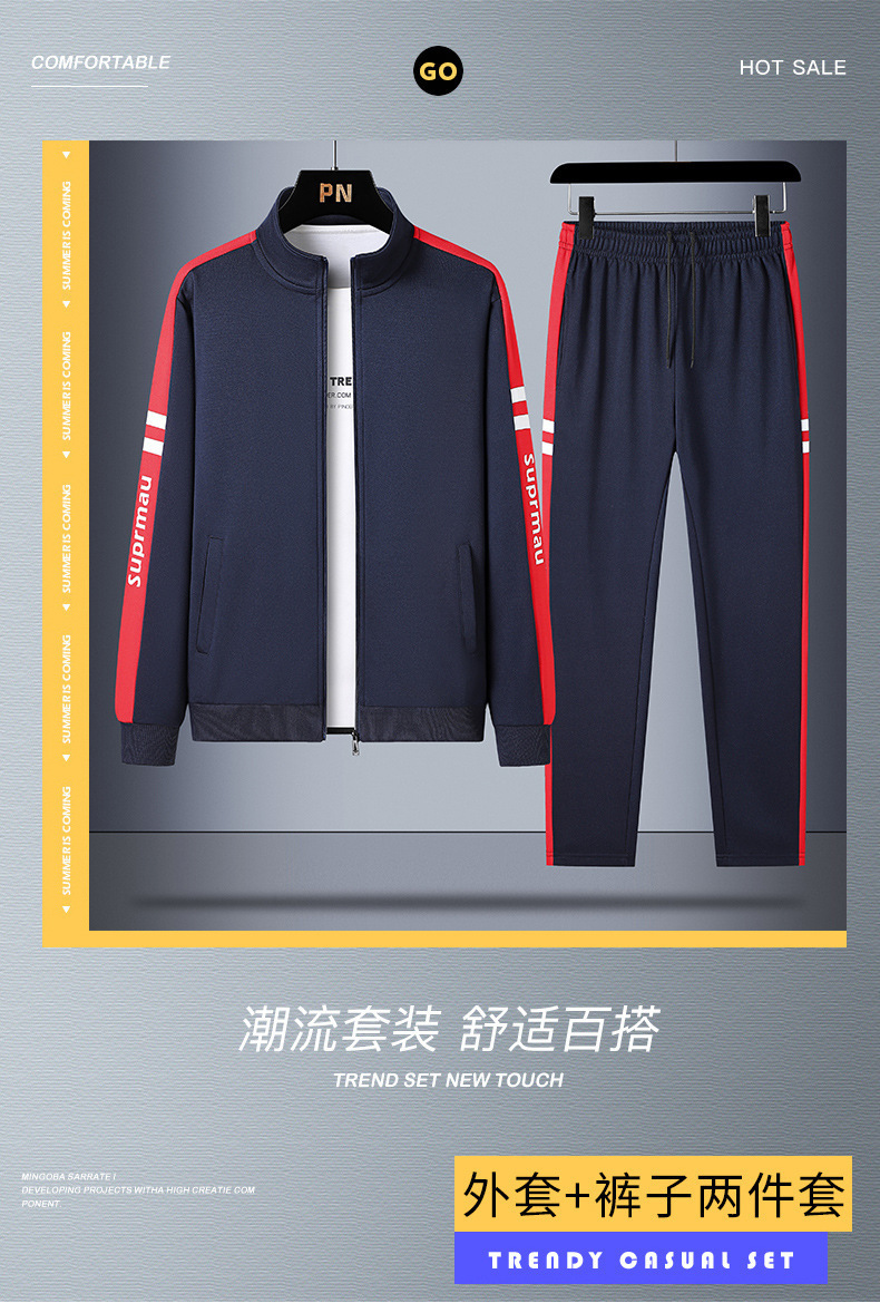 플러스 사이즈 캐주얼 스포츠 세트 2 조각 봄 및 가을 뚱뚱한 남자 운동복 카디건 스트레치 통기성 바지 세트스토어 가기