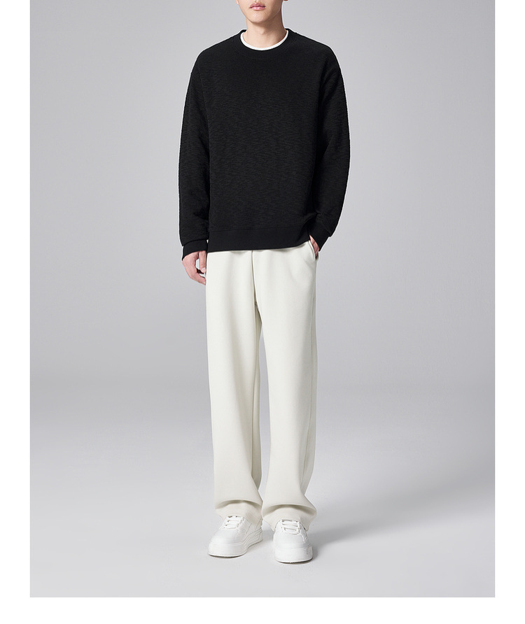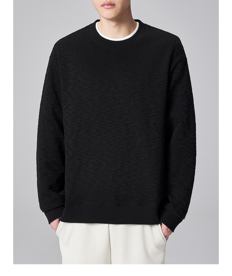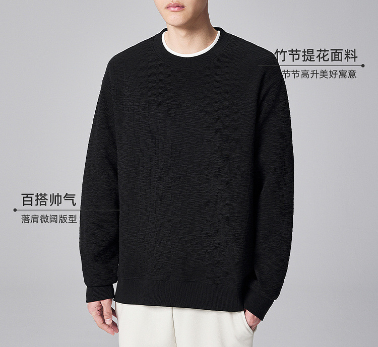 【79위안 무료배송】대나무 질감 자카드 남성 스웨트셔츠 2025 봄 신상 루즈핏 캐주얼 스웨트셔츠 남성용 55586스토어 가기