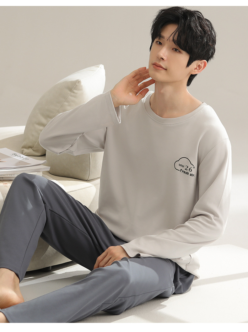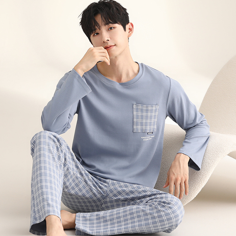남자 잠옷 봄 가을 긴 소매 새로운 도착 솔리드 컬러 한국 스타일 캐주얼 아웃웨어 코튼 홈 의류 세트