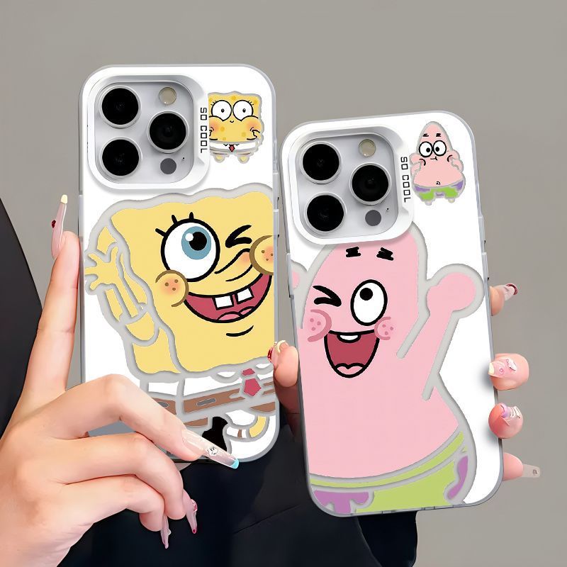 스폰지 밥 컬러 실버 16/15/14/13Pro 전화 케이스 애플 12/11Pro Max 풀 시리즈