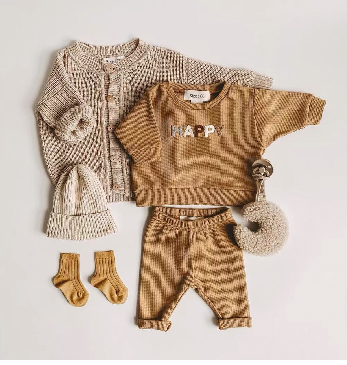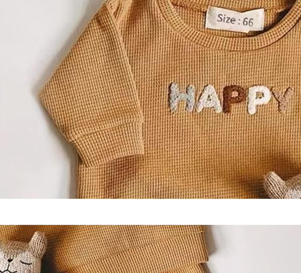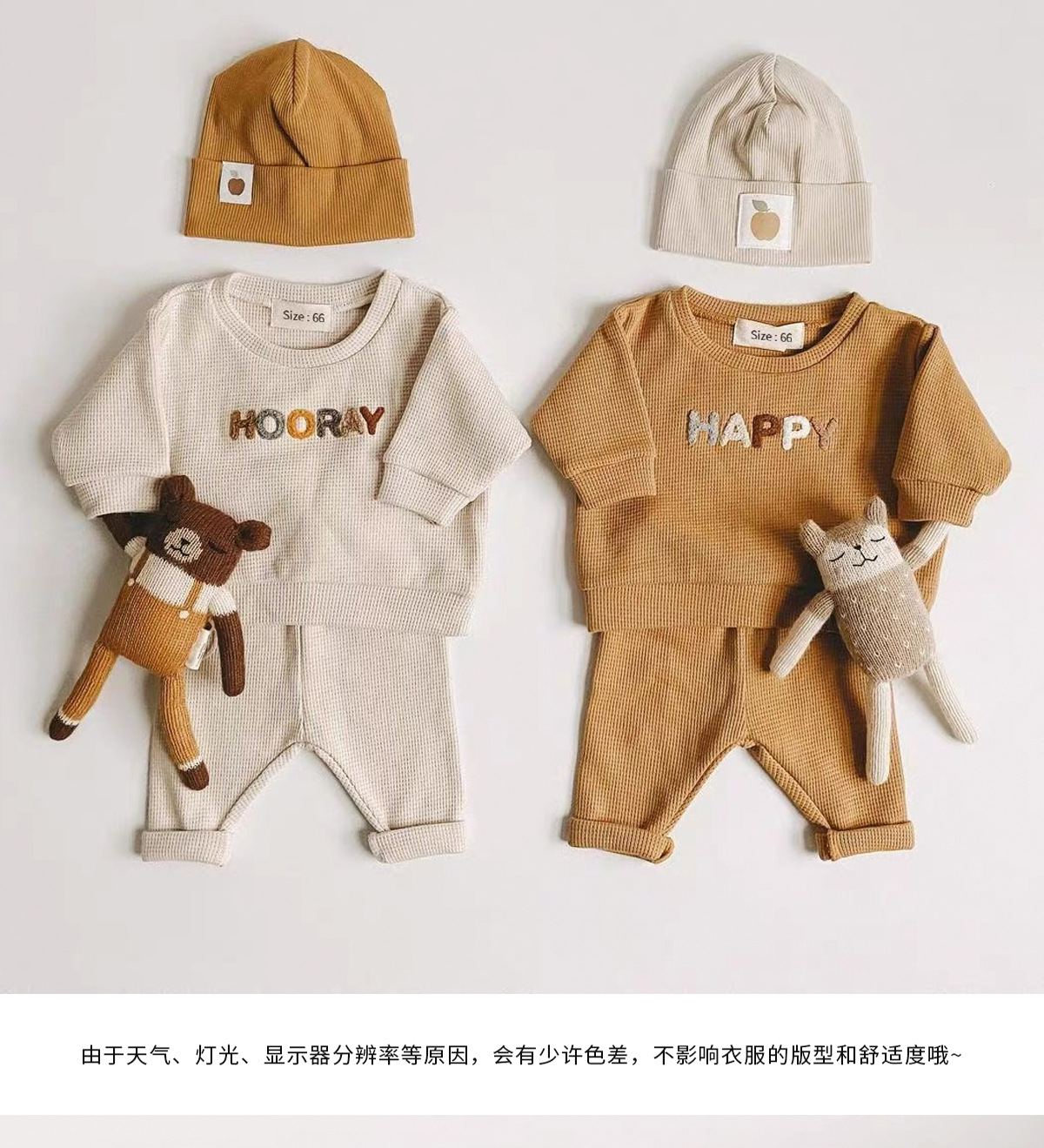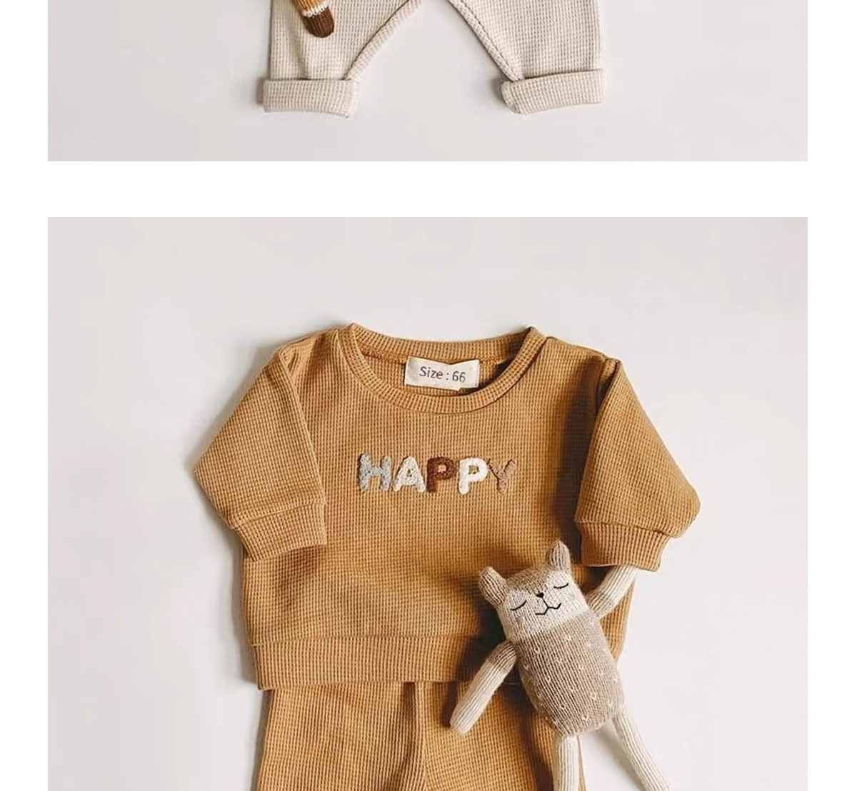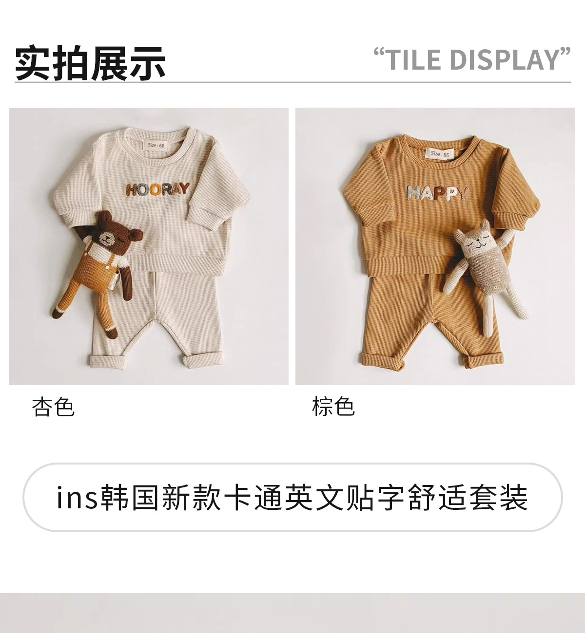 Ins 아동복 한국식 와플 편지 봄 세트 아기 캐주얼 긴팔 탑 바지 투피스 세트스토어 가기