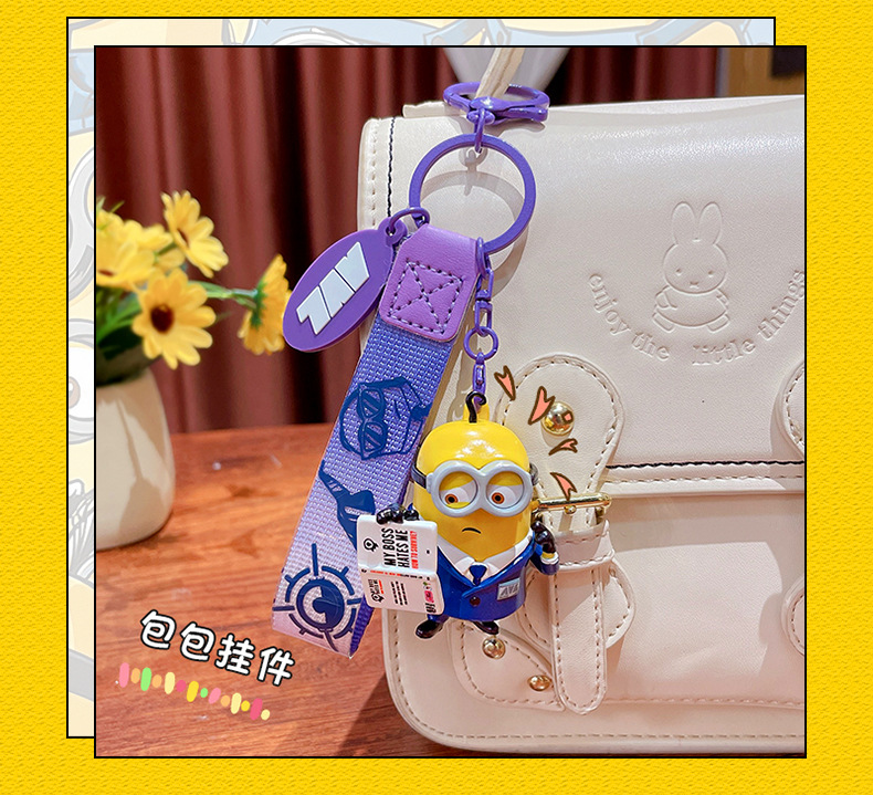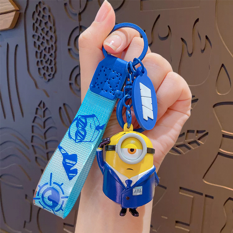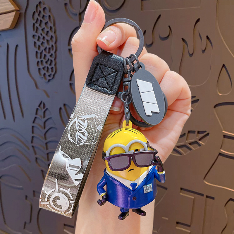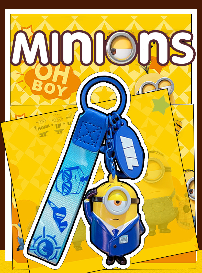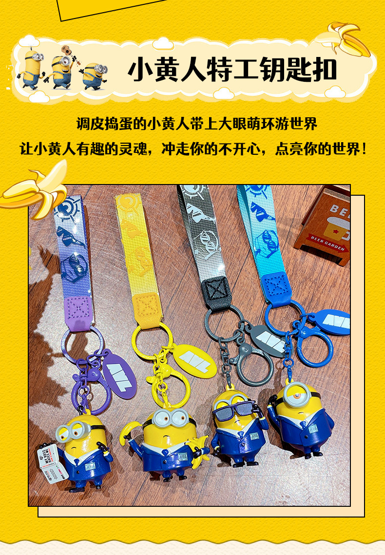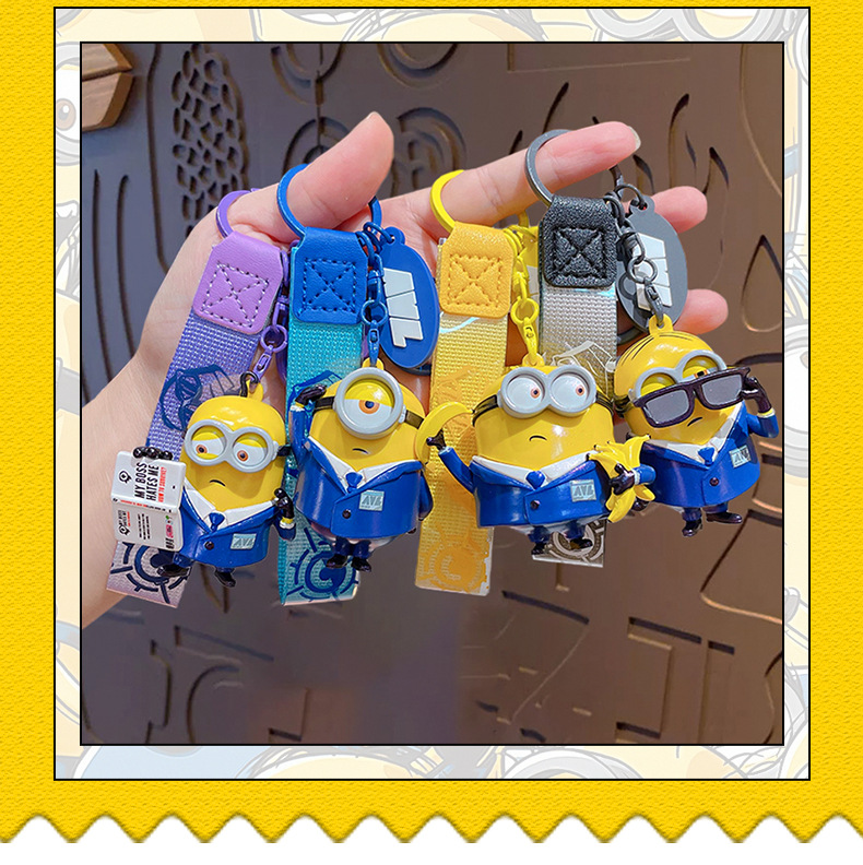 정품 미니언 에이전트 시리즈 키 체인 귀여운 만화 인형 키 체인 커플 가방 펜던트 작은 선물스토어 가기