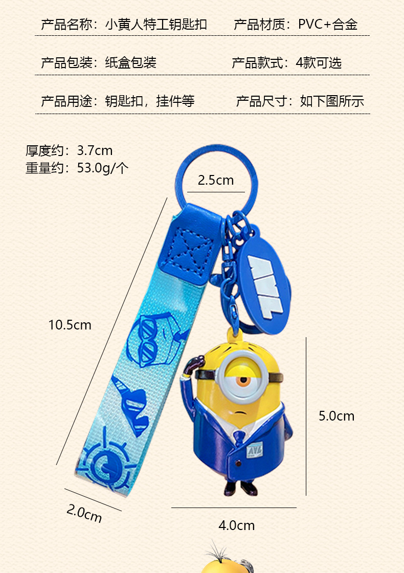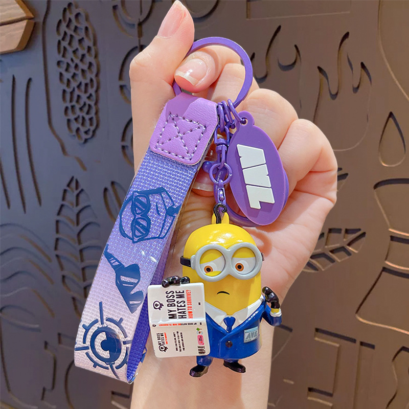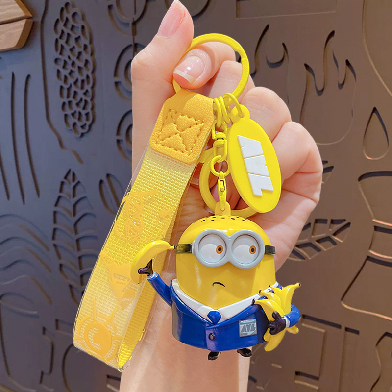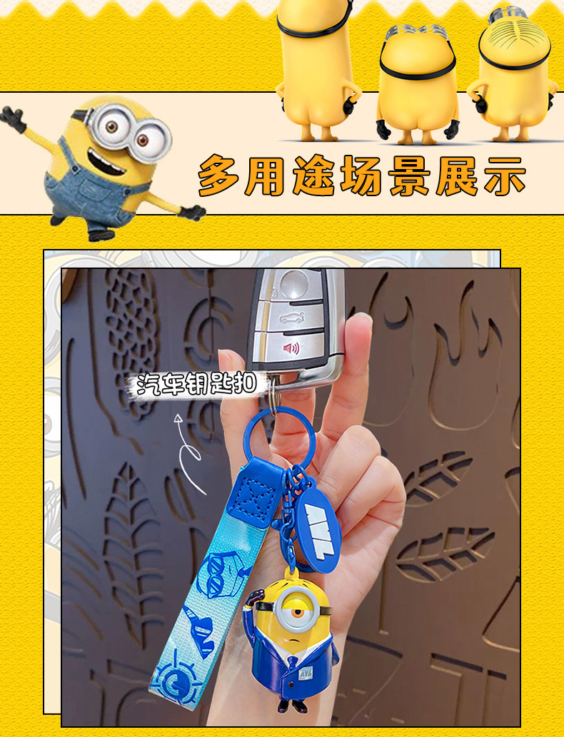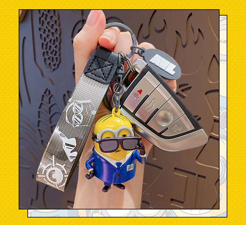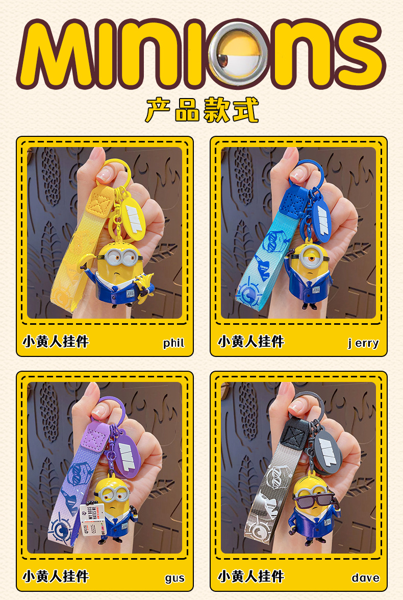 정품 미니언 에이전트 시리즈 키 체인 귀여운 만화 인형 키 체인 커플 가방 펜던트 작은 선물스토어 가기