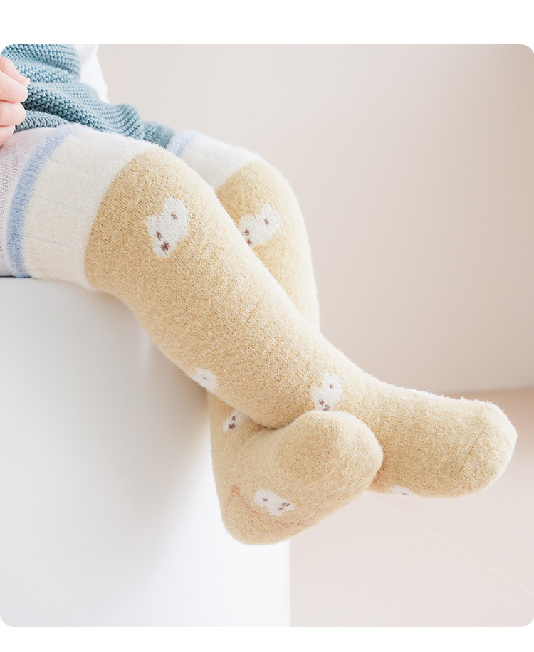 25 가을, 겨울 아기 양말 테리 두꺼운 아기 스타킹 만화 아기 점적 바닥 양말 무릎 위 유아 양말스토어 가기