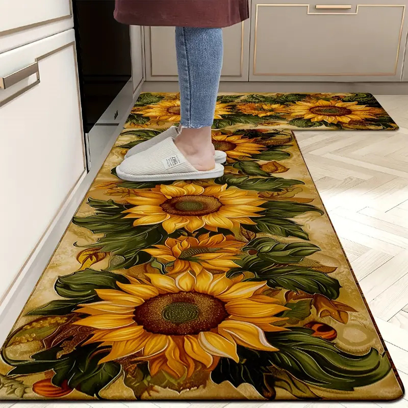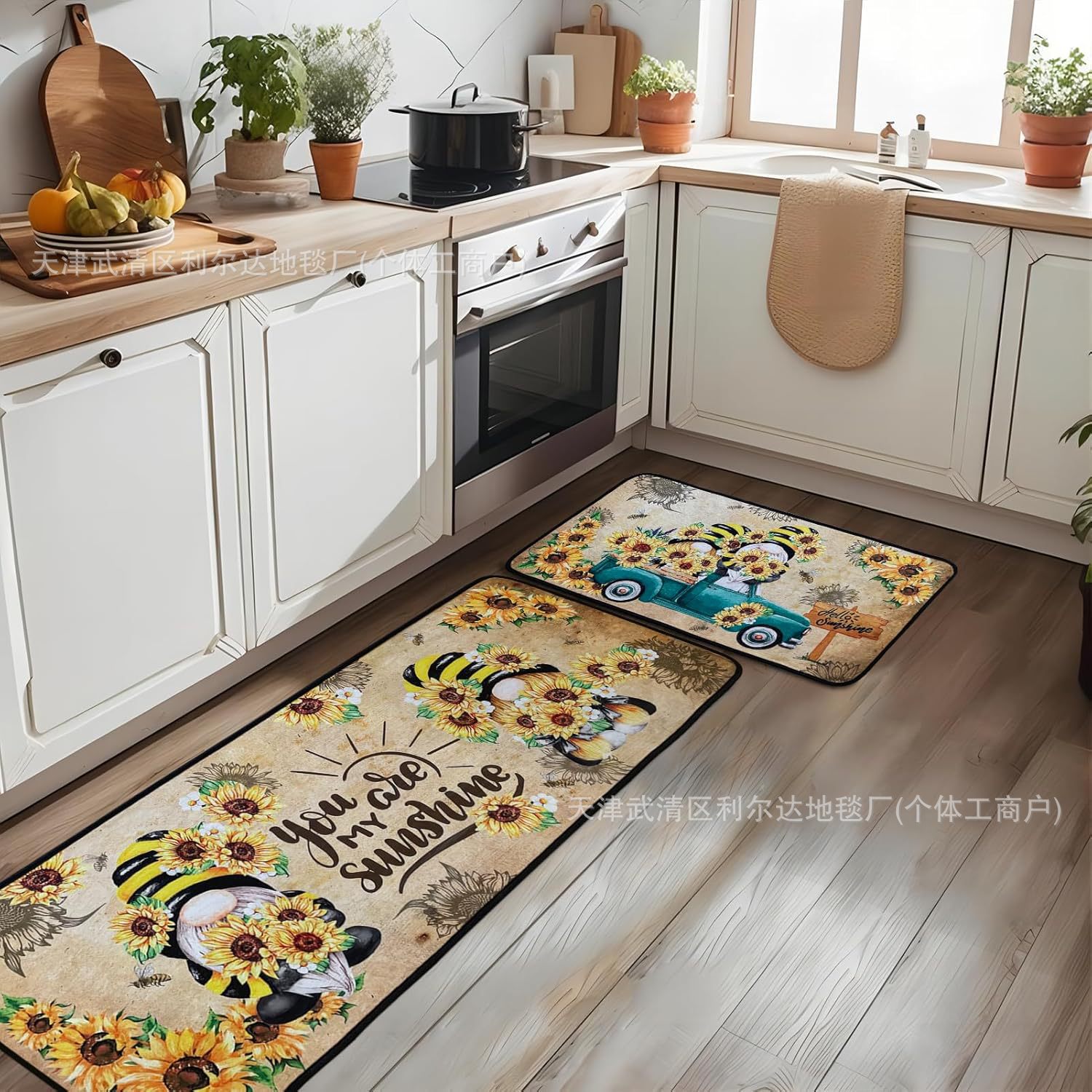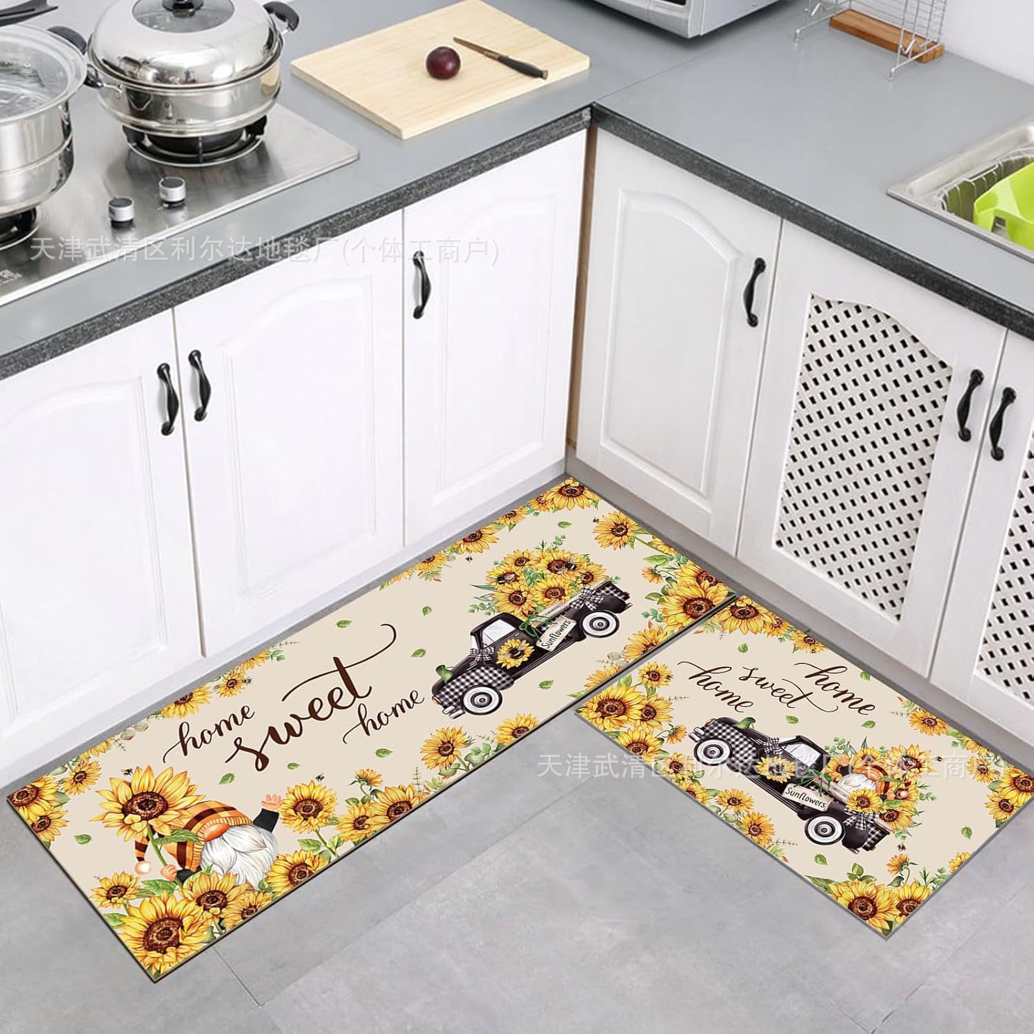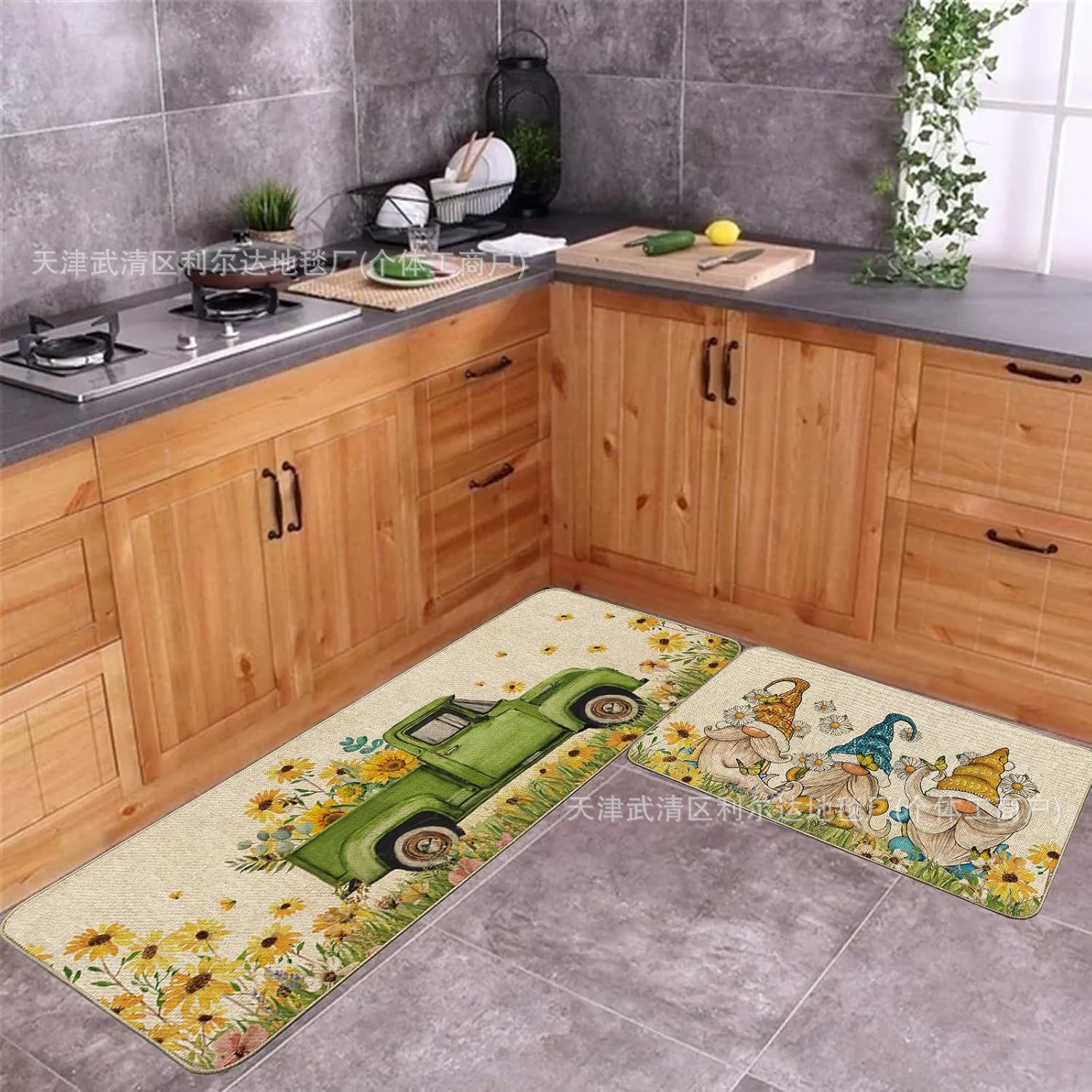 국경 간 해바라기 시리즈 긴 주방 매트 가정용 미끄럼 방지 더러운 흡수성 매트 입구 문 매트 재고