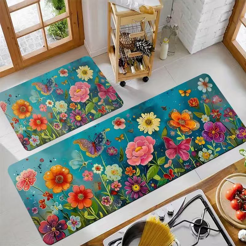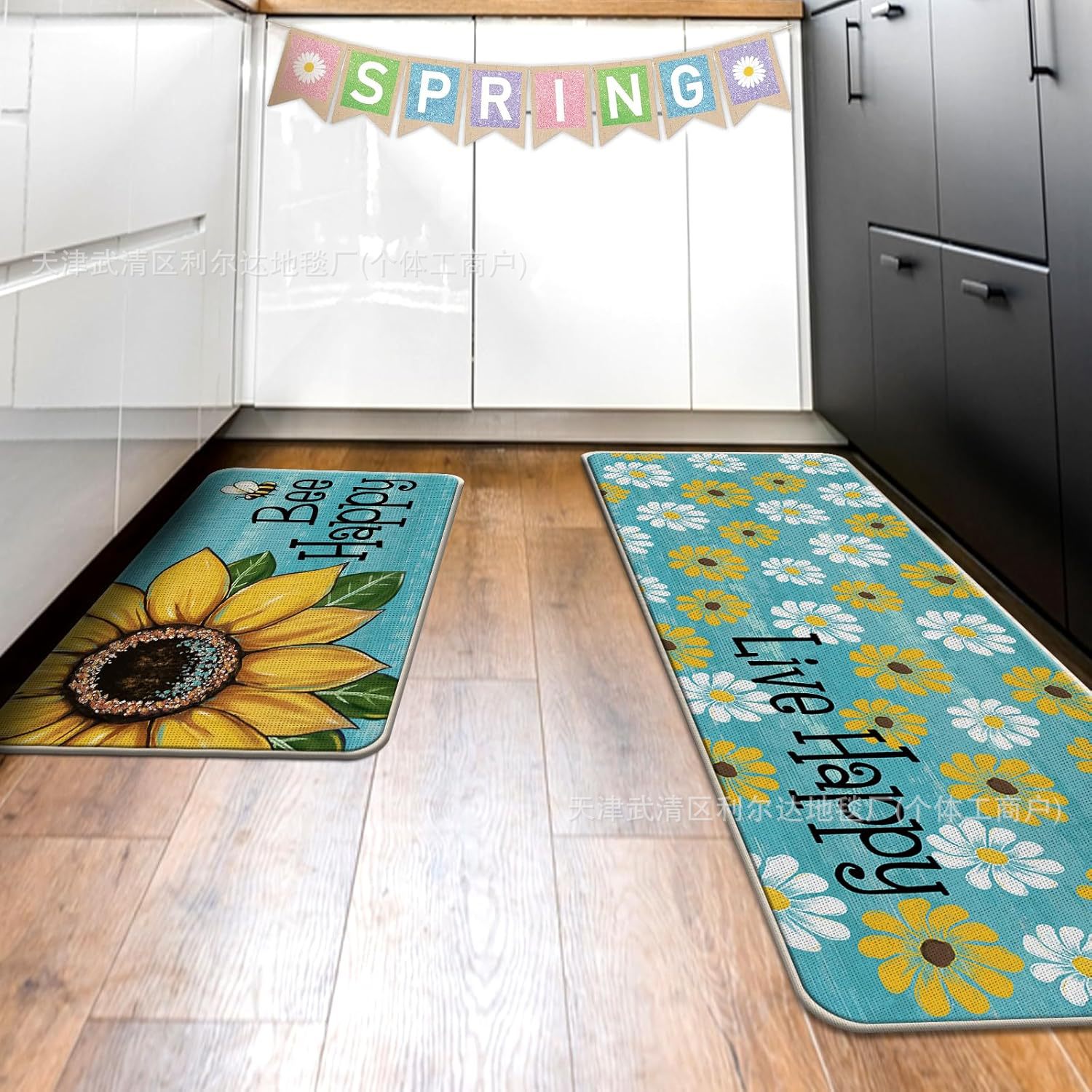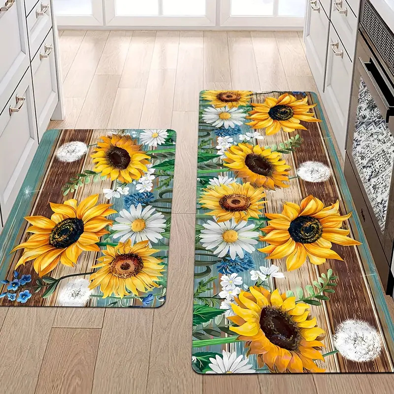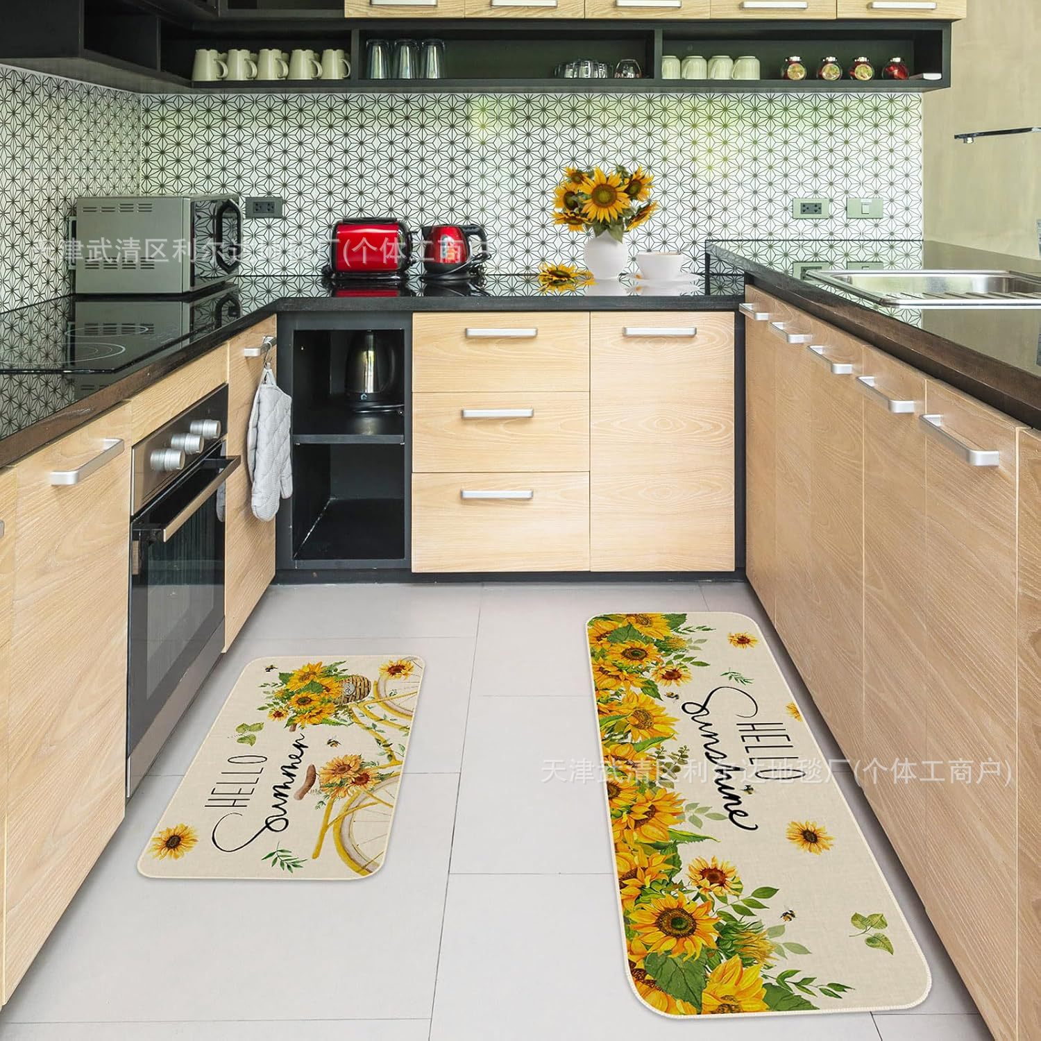 국경 간 해바라기 시리즈 긴 주방 매트 가정용 미끄럼 방지 더러운 흡수성 매트 입구 문 매트 재고