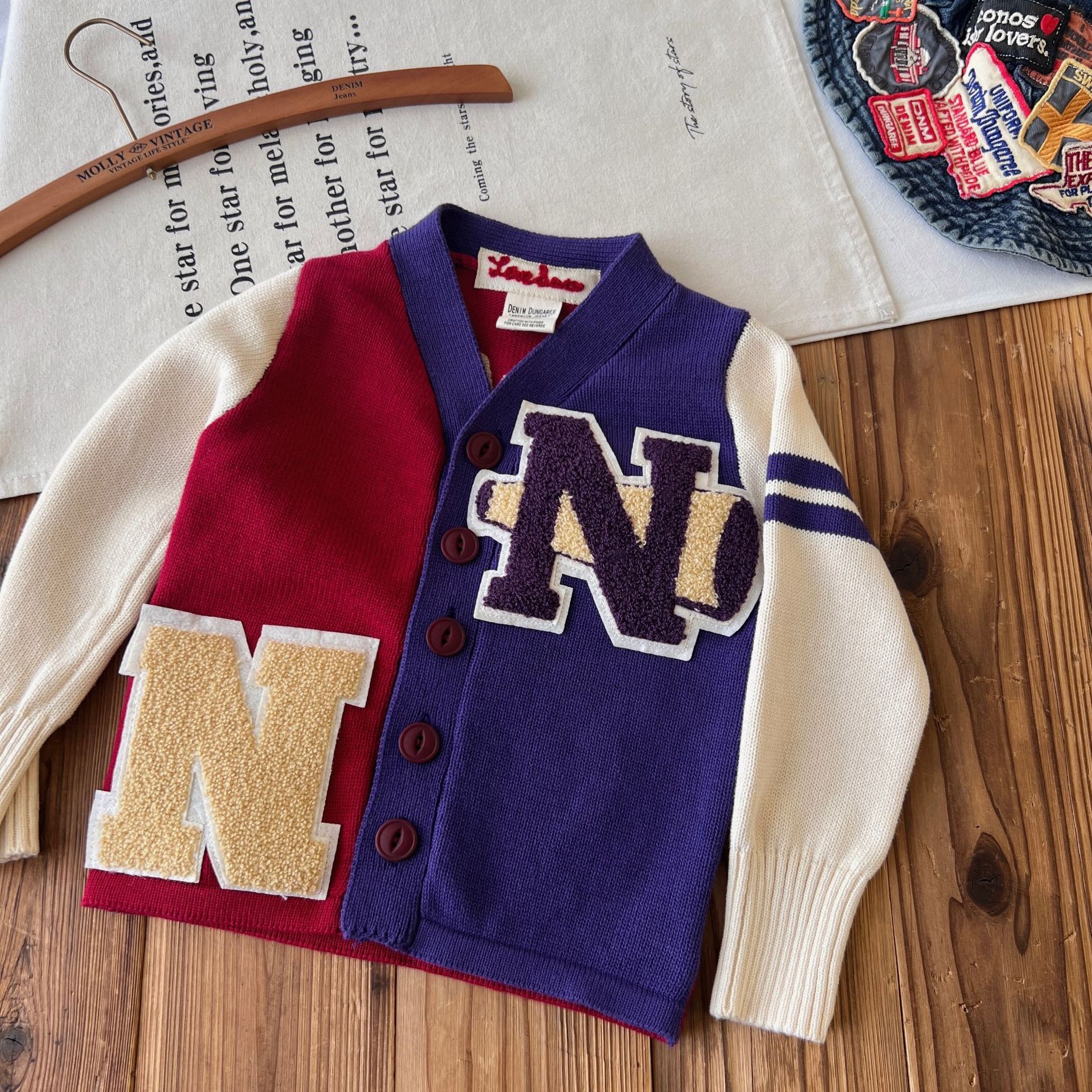 [재고] 일본 아동복 DD 중세 어린이 N 단어 스웨터 카디건 재킷