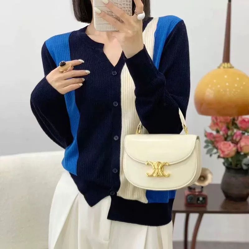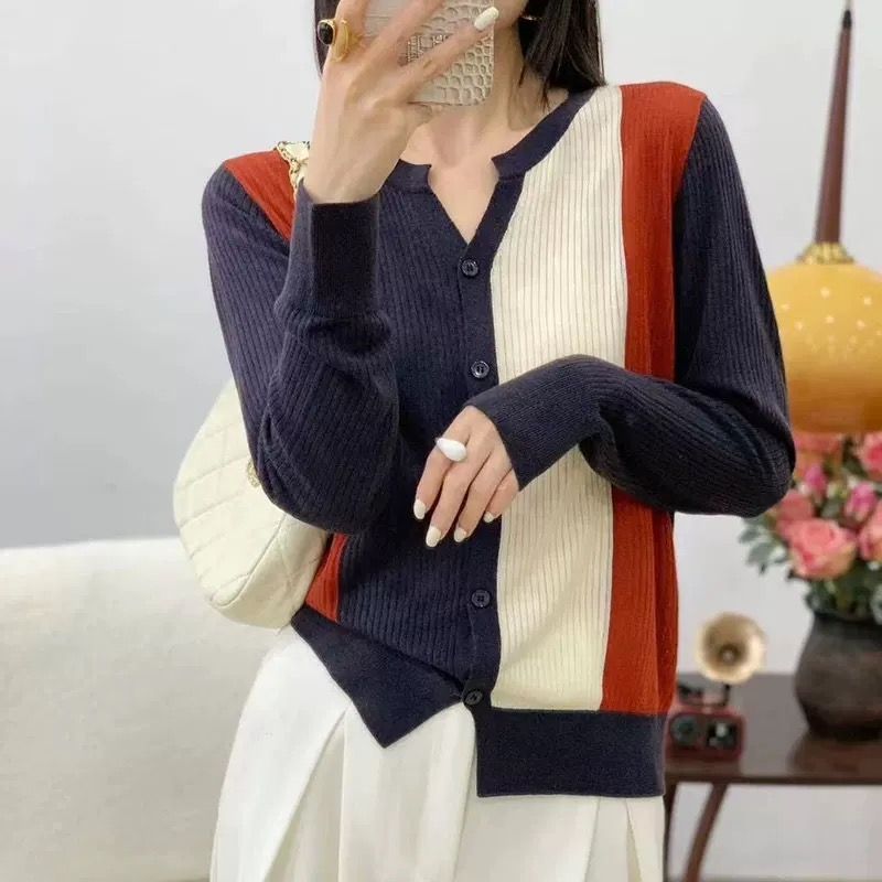 이른 가을 새로운 탑 긴 소매 가을과 겨울 플러스 사이즈 패션 니트 스웨터 올 매치 연령 감소 디자인 컬러 매칭 스웨터 카디건