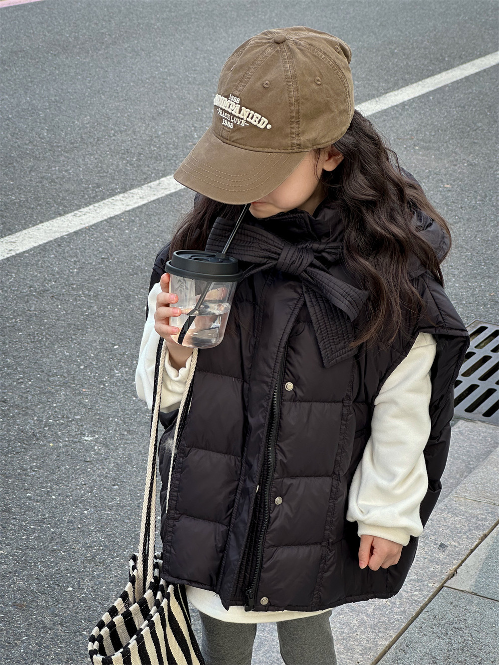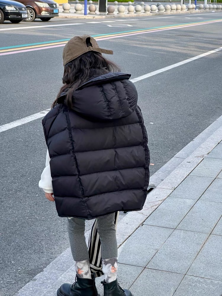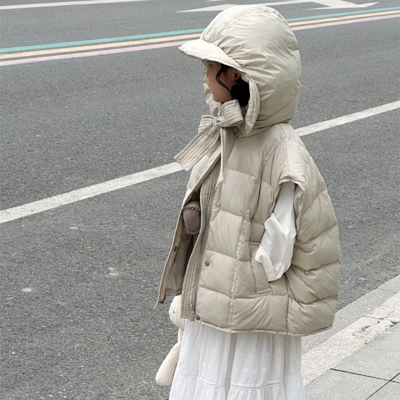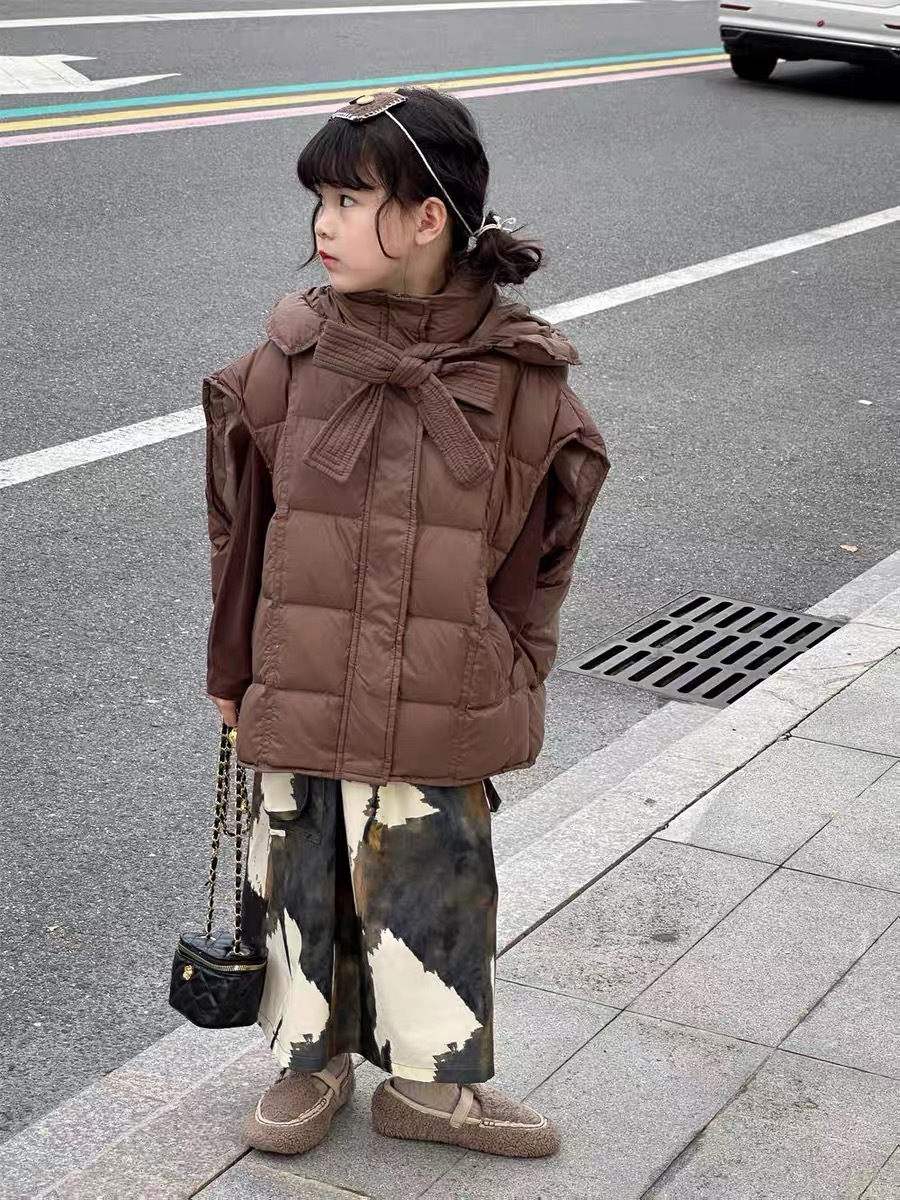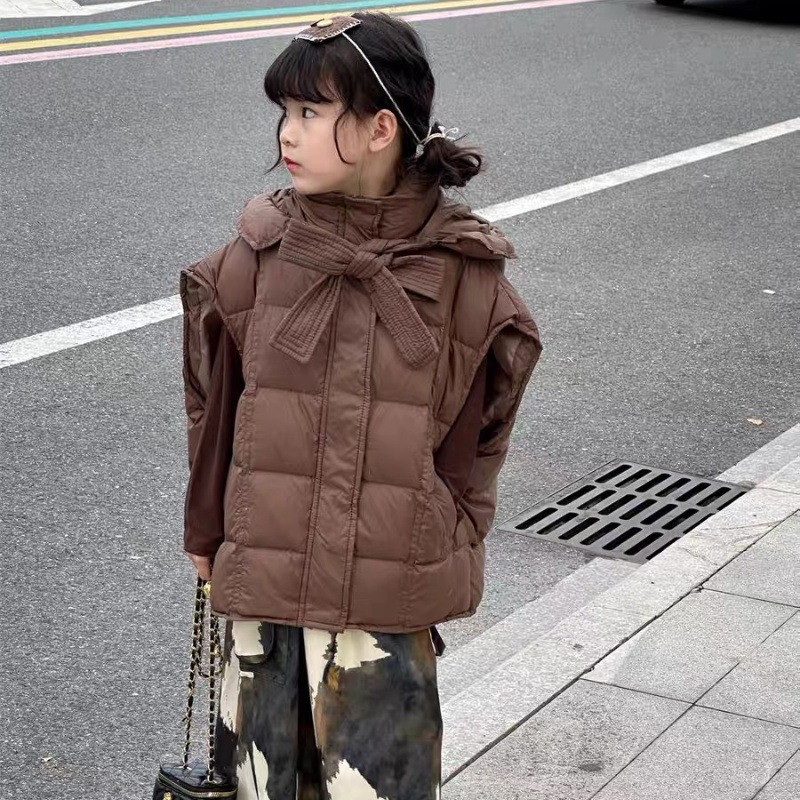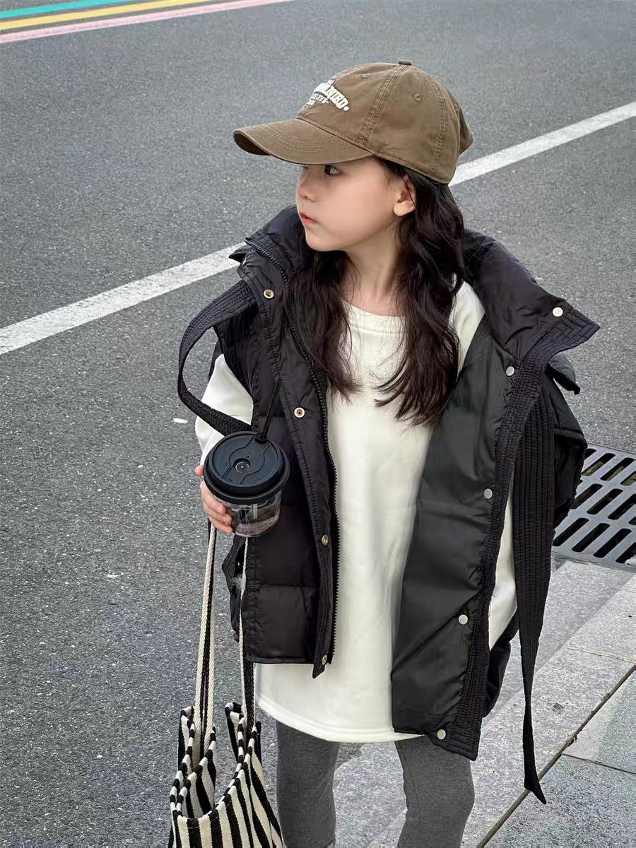한국 아동복 소녀 다운 조끼 2024 겨울 새 어린이 느슨한 빵 세트 어깨 조끼스토어 가기