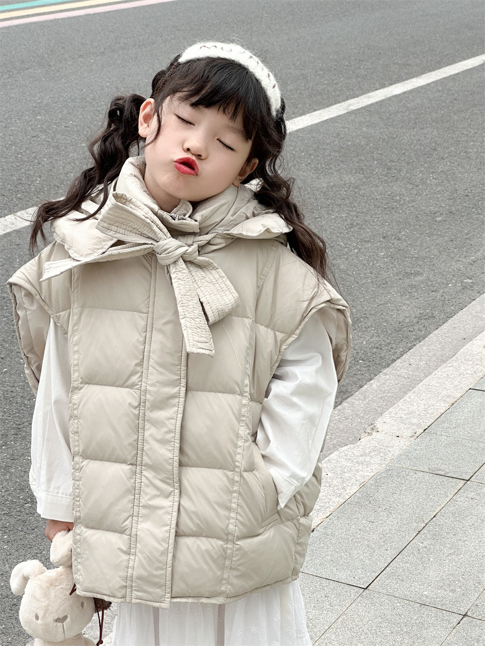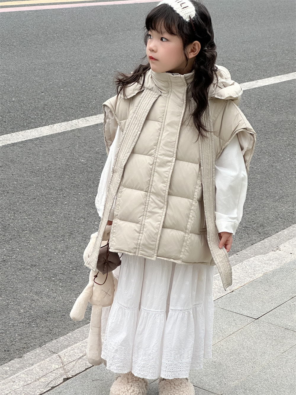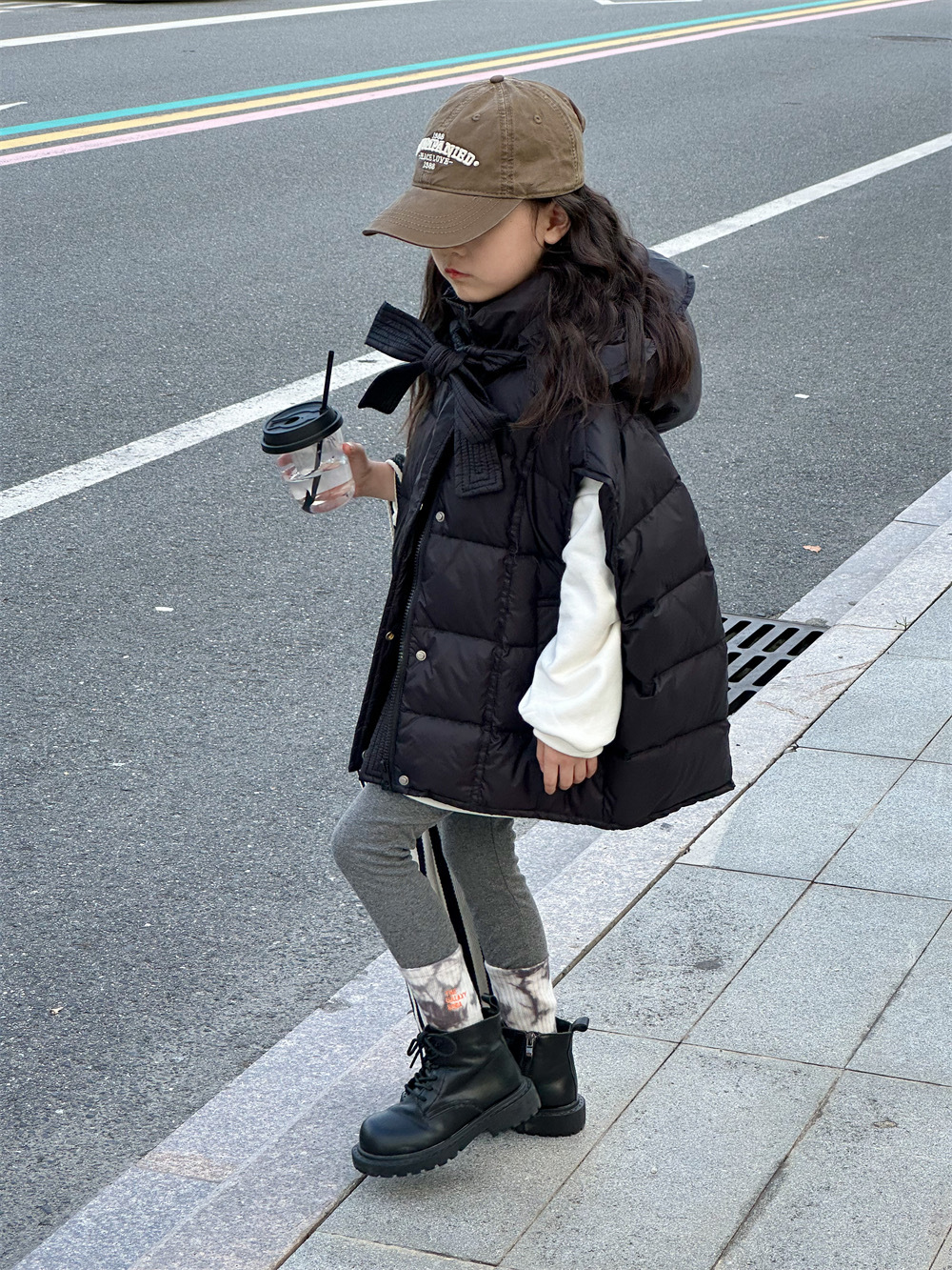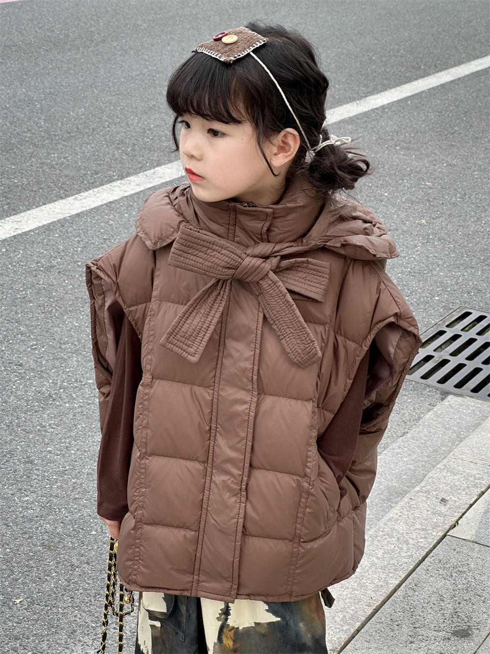 한국 아동복 소녀 다운 조끼 2024 겨울 새 어린이 느슨한 빵 세트 어깨 조끼스토어 가기