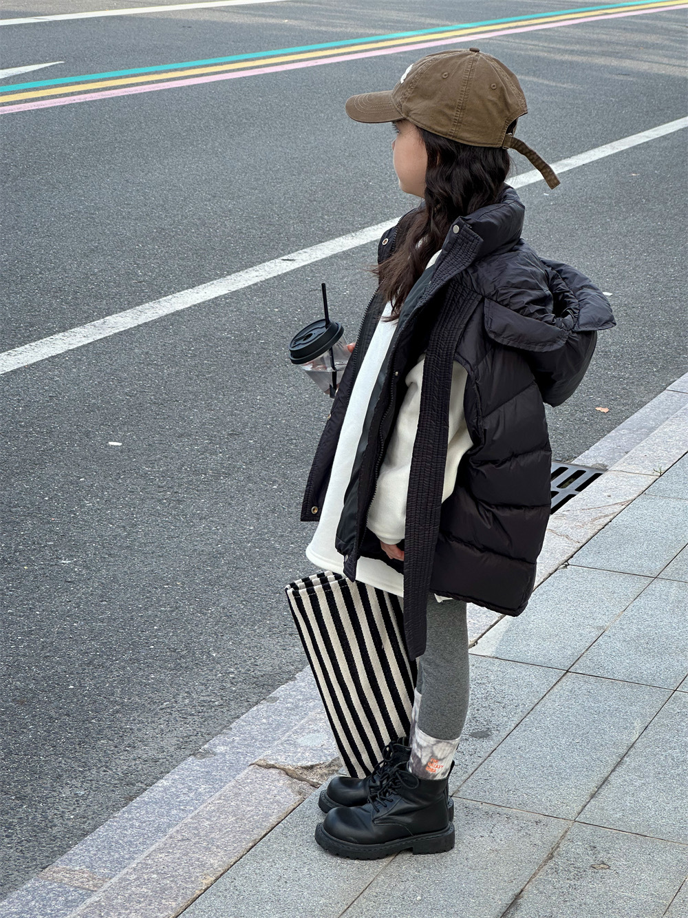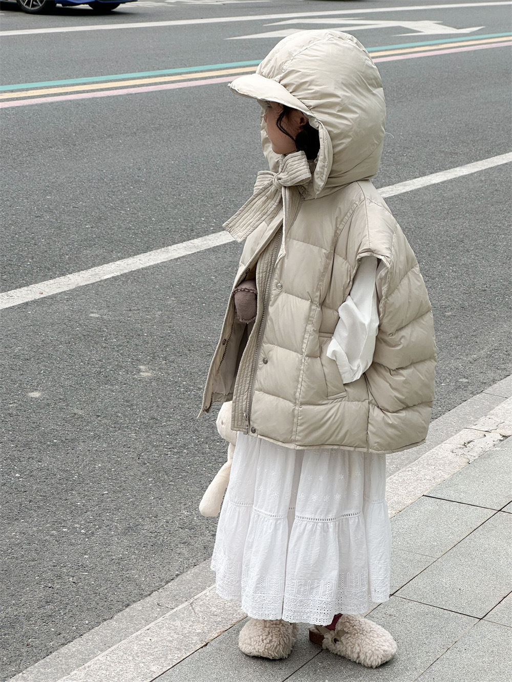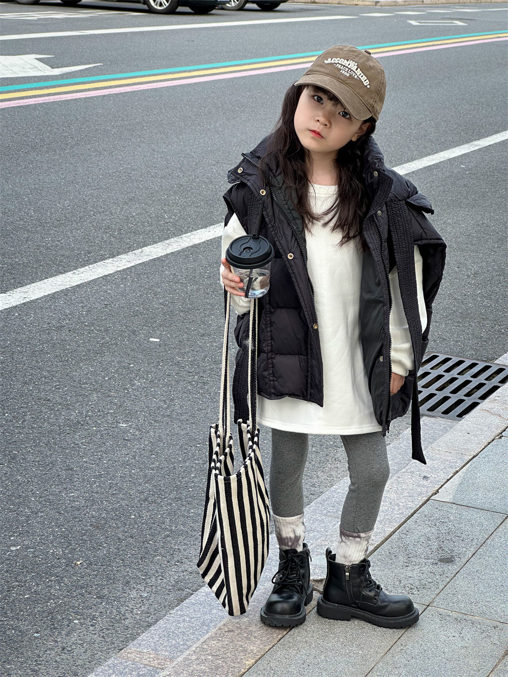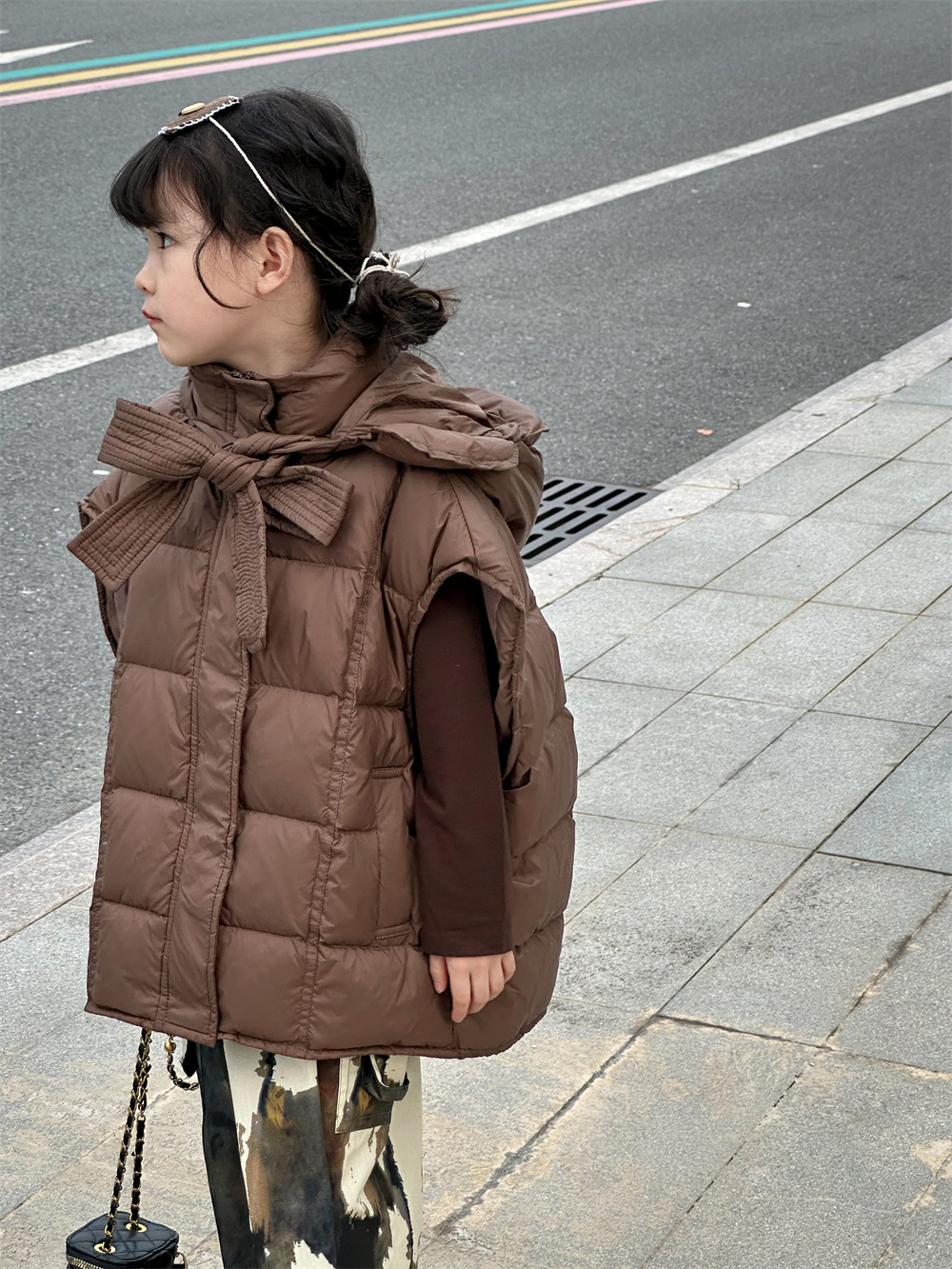 한국 아동복 소녀 다운 조끼 2024 겨울 새 어린이 느슨한 빵 세트 어깨 조끼스토어 가기