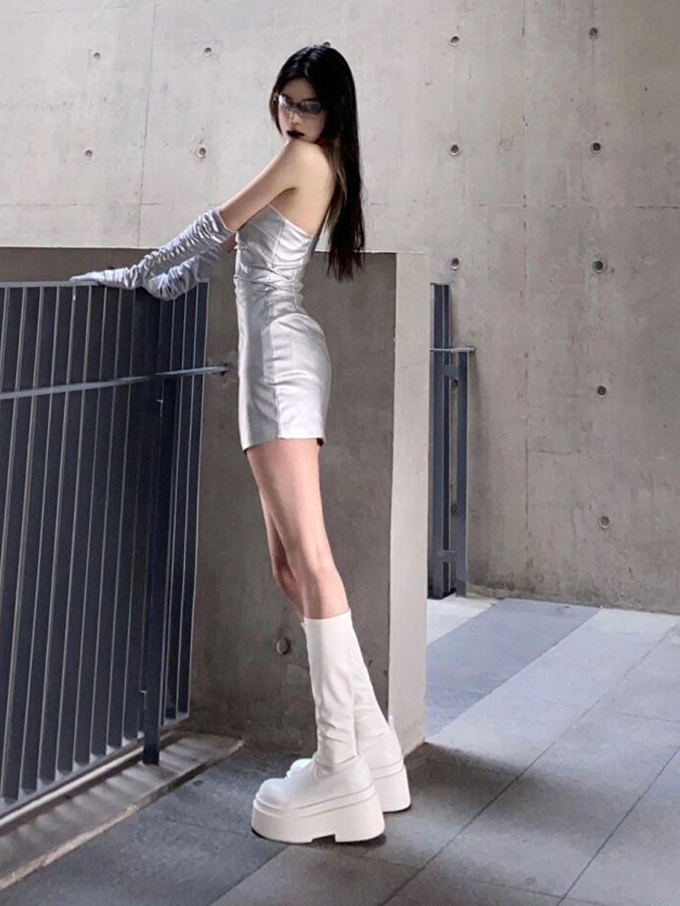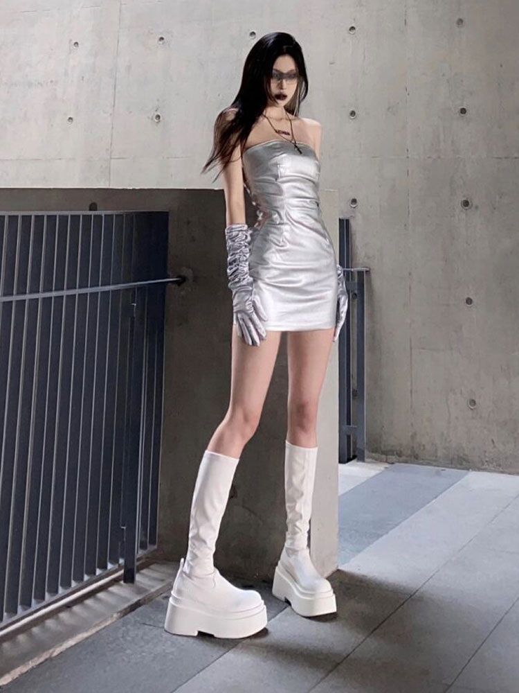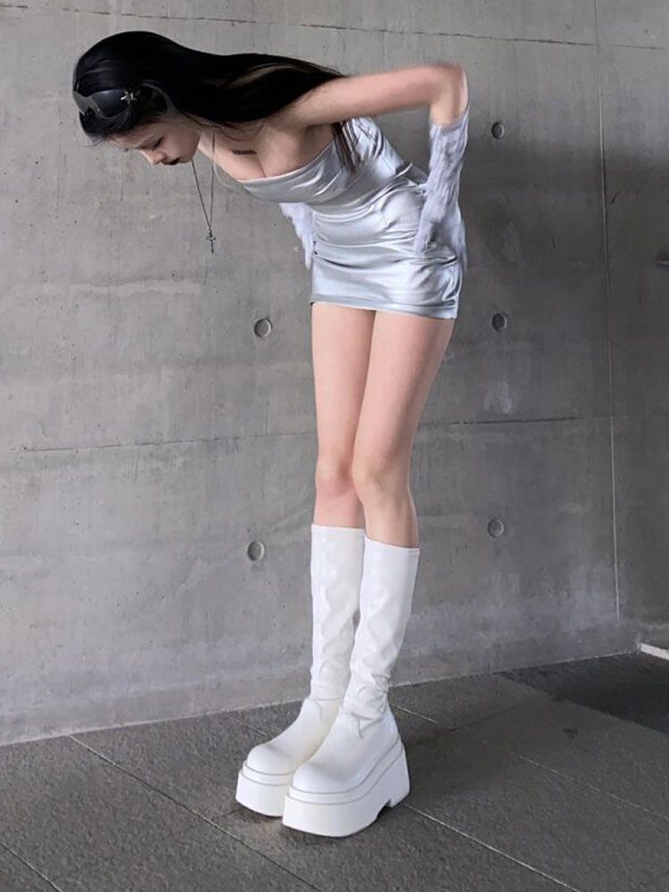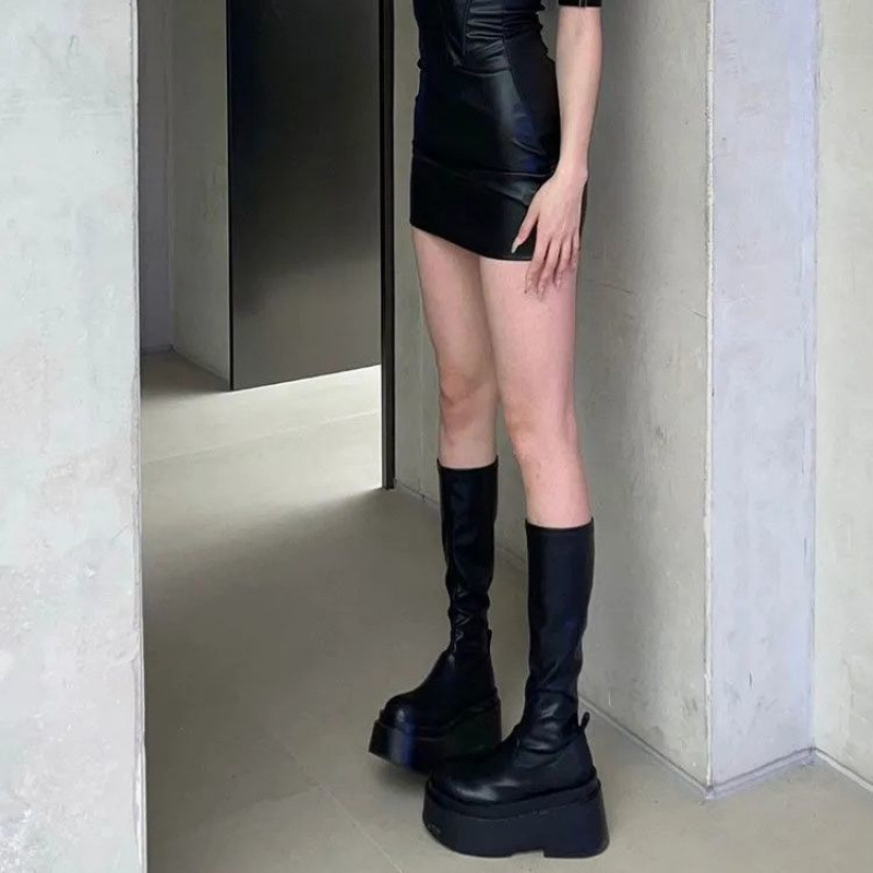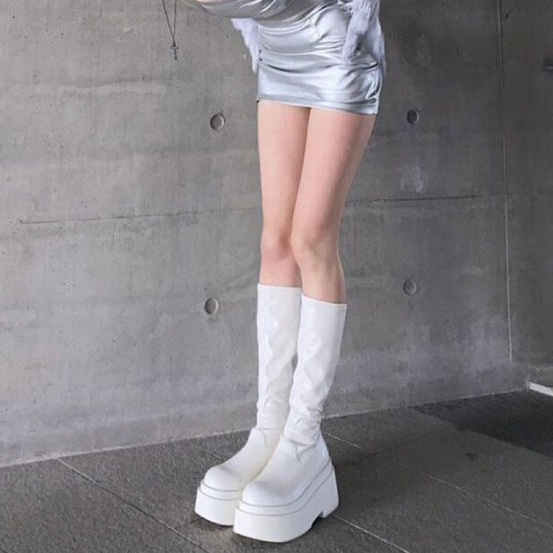 부드러운 가죽 버전! 화이트 플랫폼 부츠 여성 여름 얇은 높은 기사 부츠 영국 스타일 작은 마틴 부츠스토어 가기