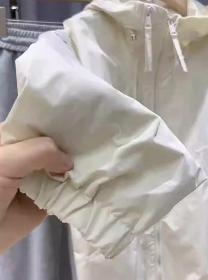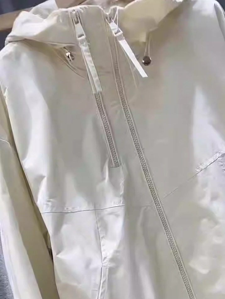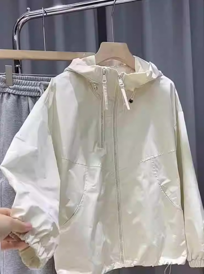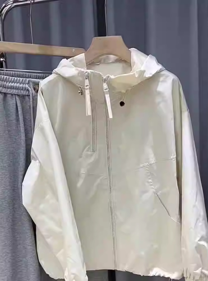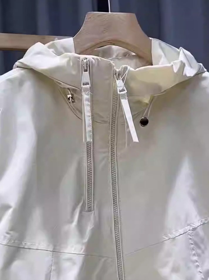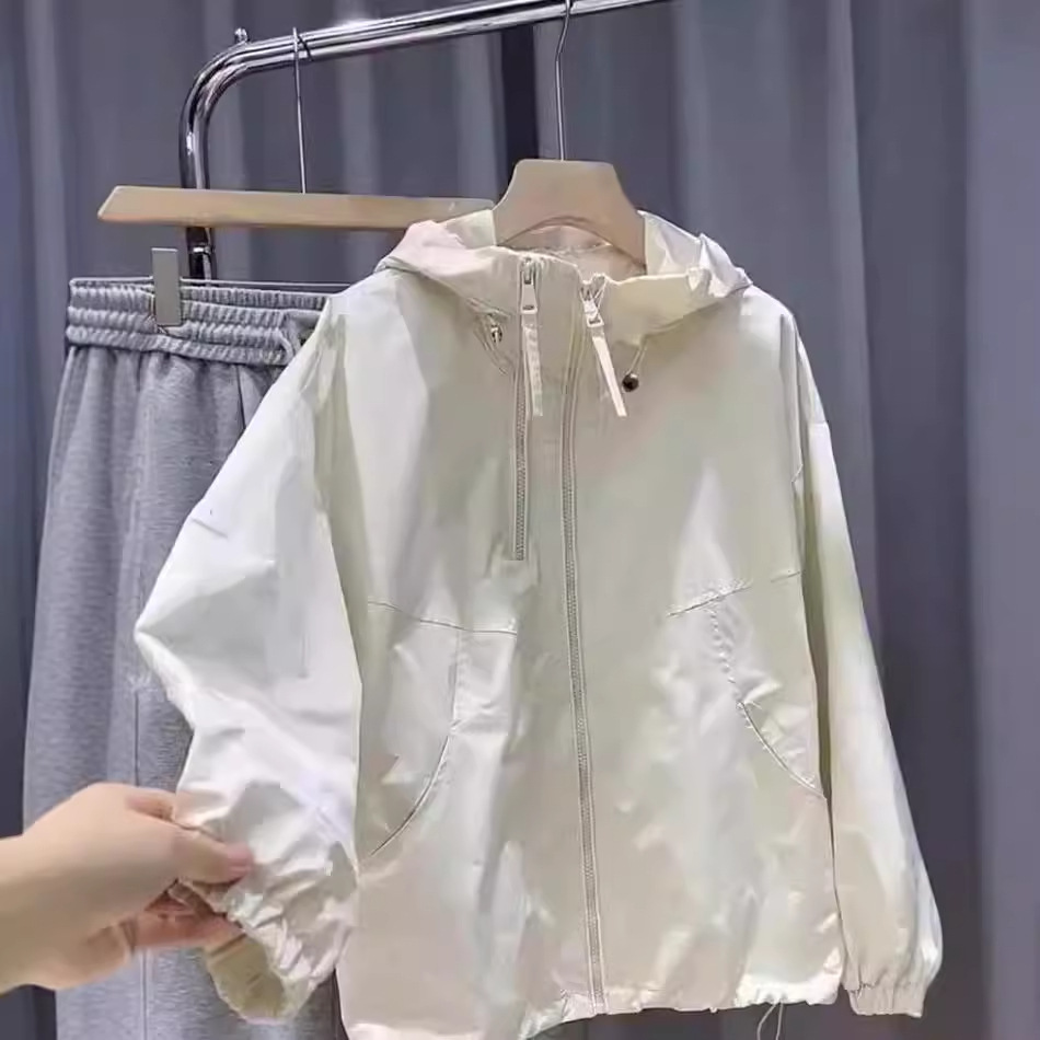 여성용 후드 화이트 재킷 2024 봄, 가을 새로운 유럽 스타일 다목적 얇은 자외선 차단 의류 캐주얼 재킷스토어 가기
