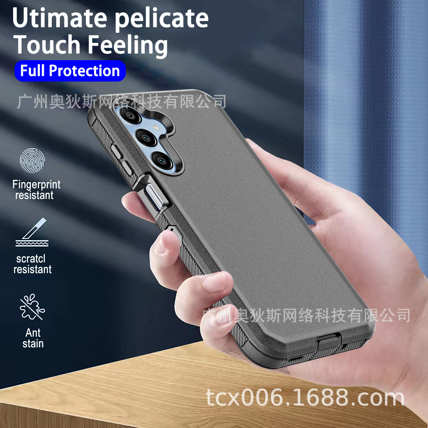 2.【设计构思】双层防护,三项材质结合,内层是由2个PC硬壳前后组成,可以的固定手机不容易松动,可以的屏幕不被划伤, 外层是TPU,在内层的保护之下,外层起到了一种缓冲作用.可以的过度的碰撞而损坏程度。