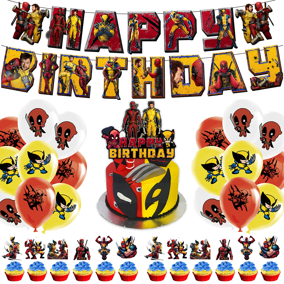 데드 풀과 울버린 테마 생일 파티 장식 데드 풀 & 울버린 깃발 풍선 케이크 삽입스토어 가기