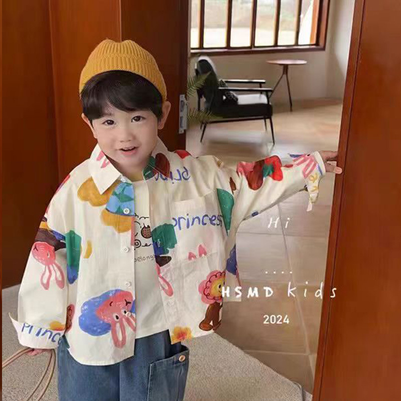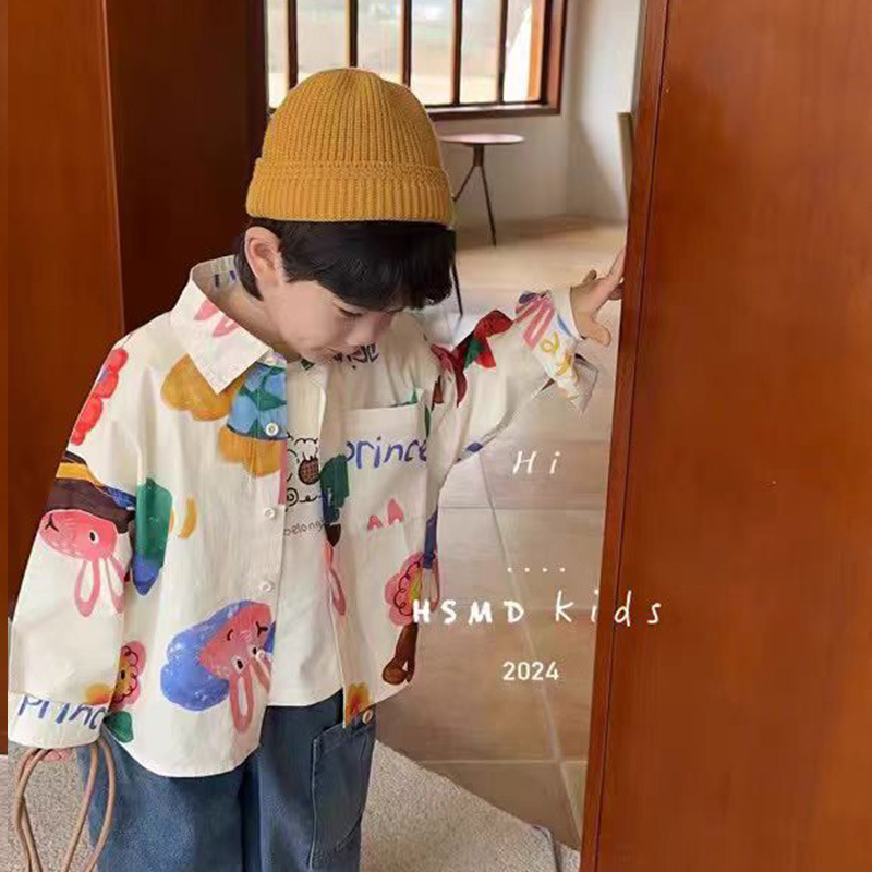 어린이 만화 셔츠 소년의 봄과 가을 2024 봄 새로운 어린이 인쇄 서양식 귀여운 최고 유행스토어 가기
