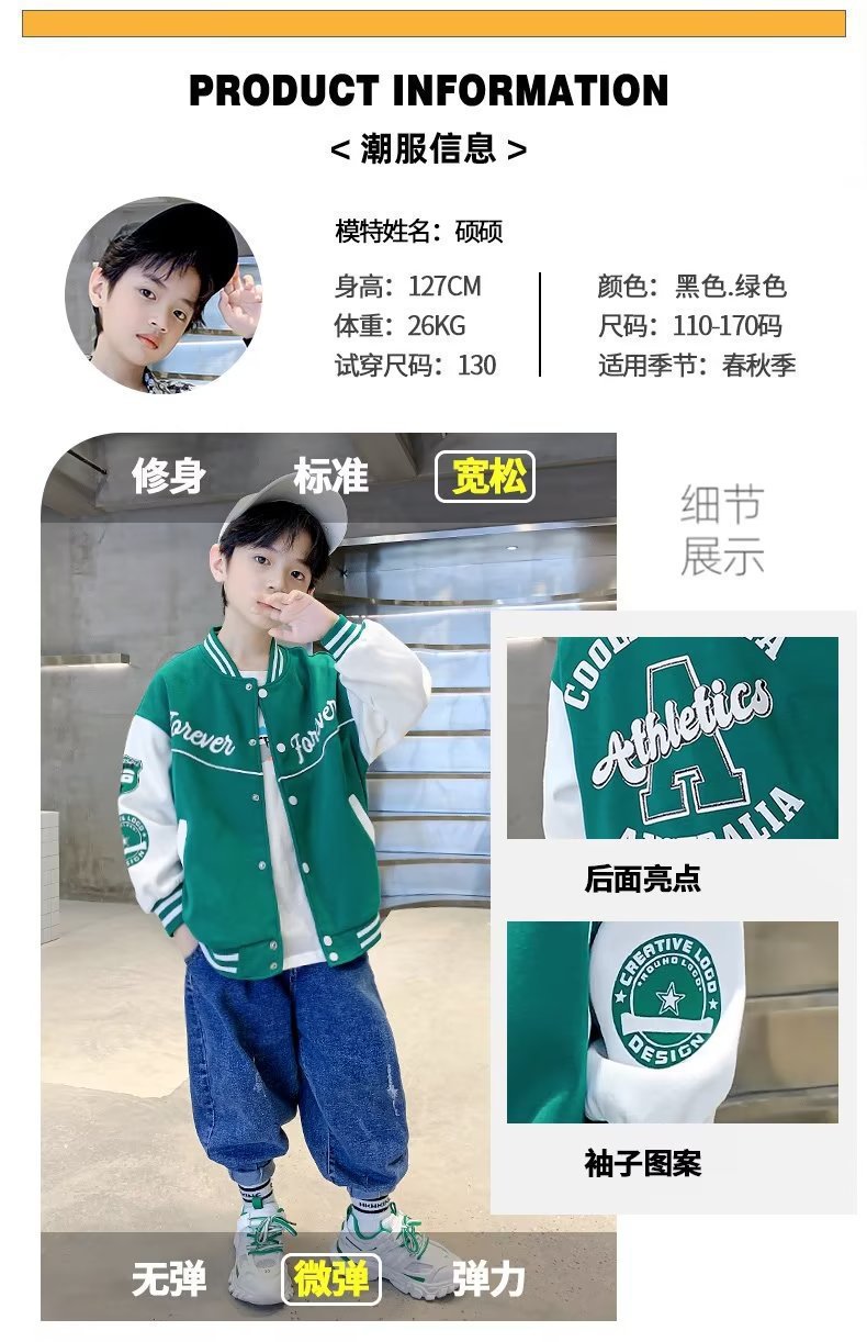 소년 야구 세트 코트 어린이 봄 재킷 2024 새로운 중대형 어린이 스포츠 소년 봄 가을 재킷스토어 가기