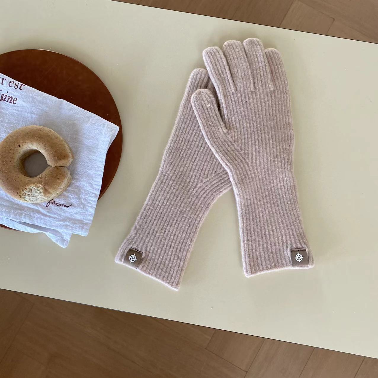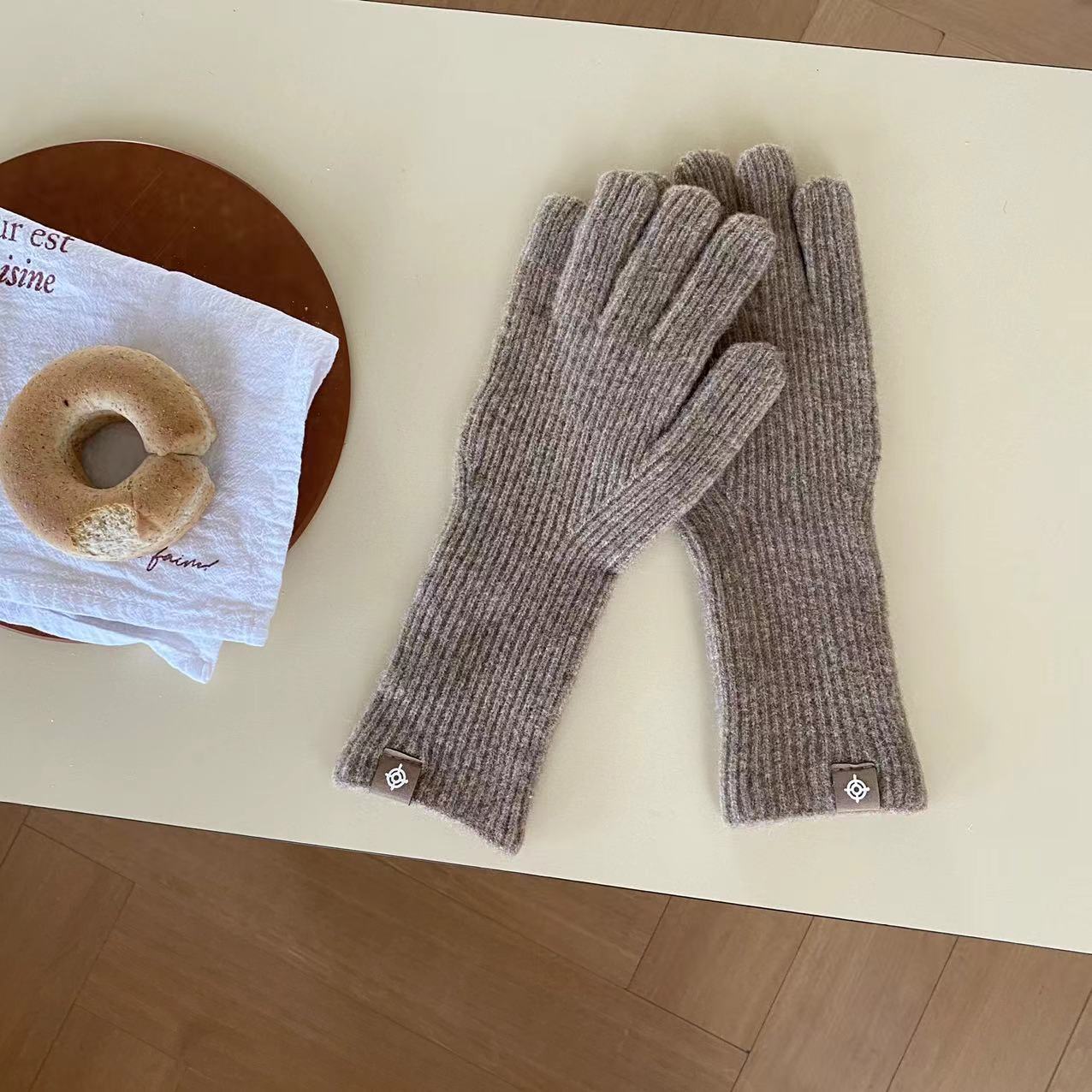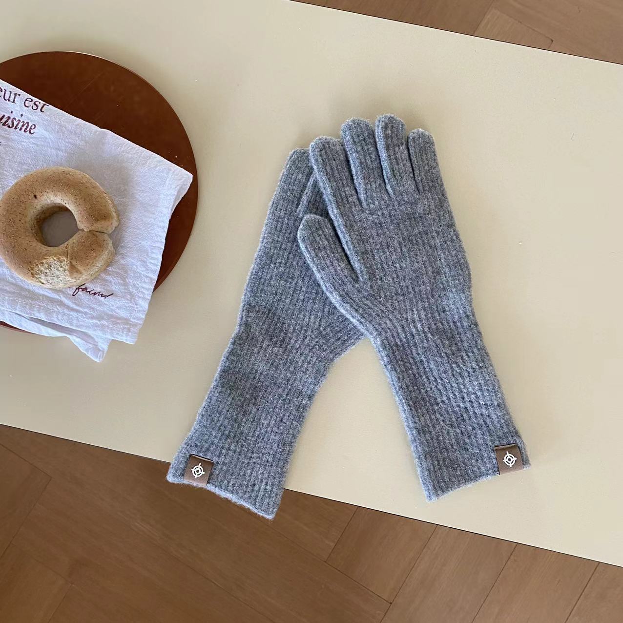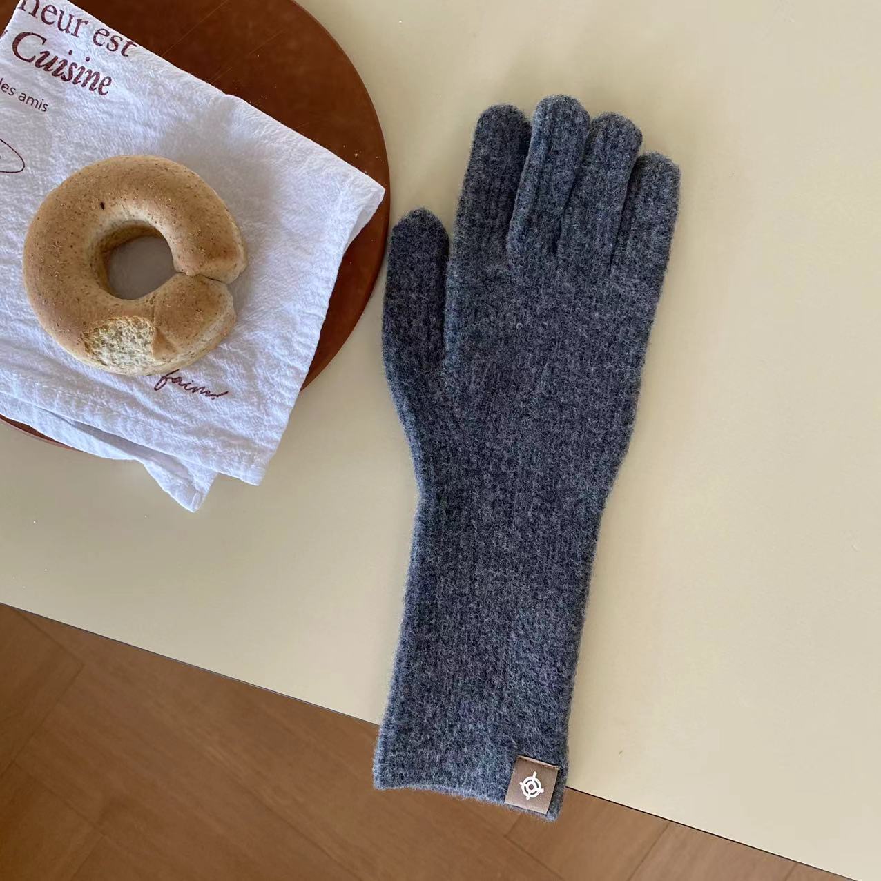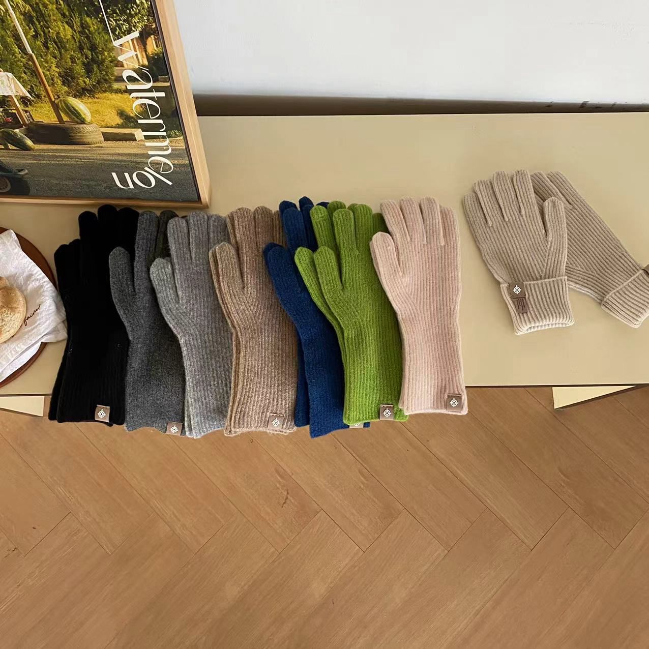 2024 겨울 새 한국 구매 모직 단색 장갑 5 손가락 터치 스크린 장갑 숙녀 울 장갑