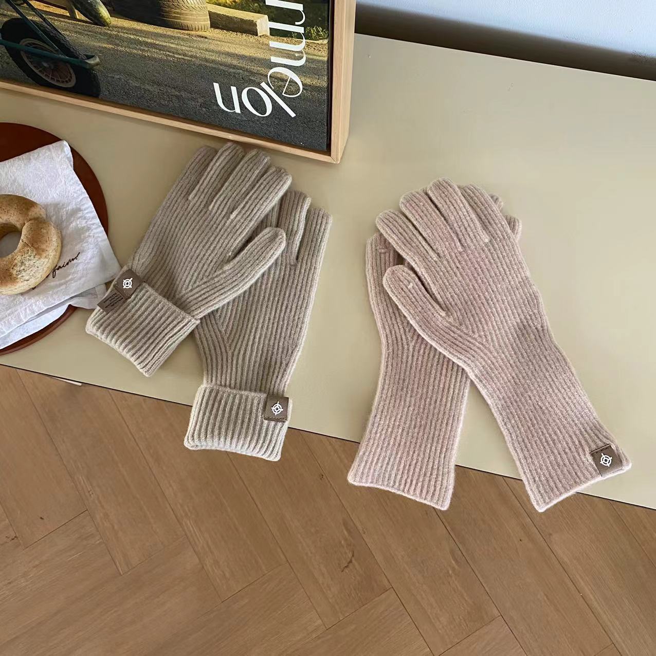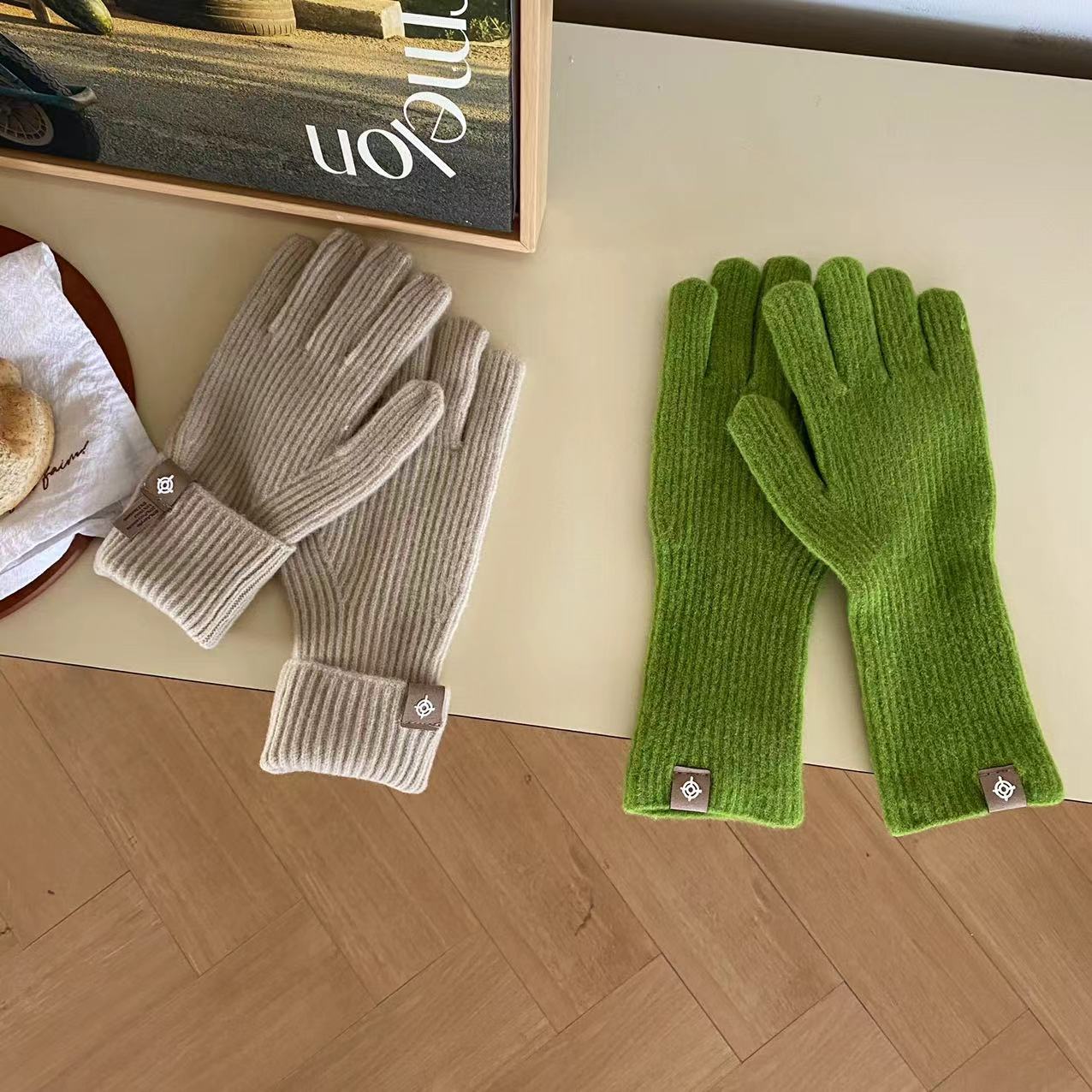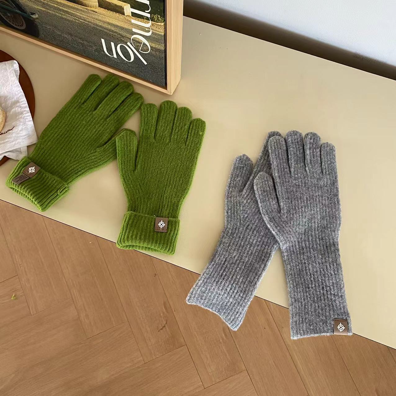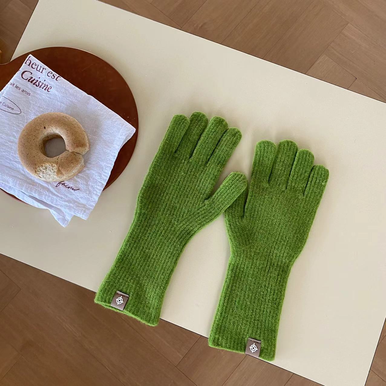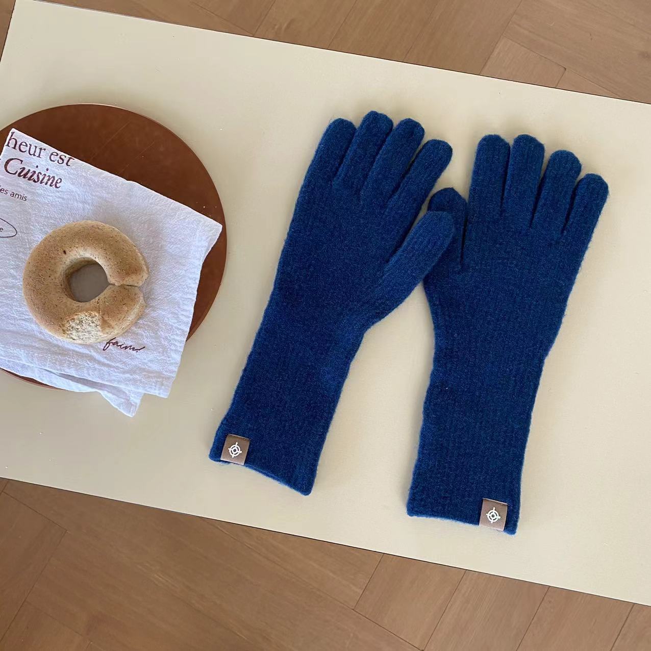 2024 겨울 새 한국 구매 모직 단색 장갑 5 손가락 터치 스크린 장갑 숙녀 울 장갑