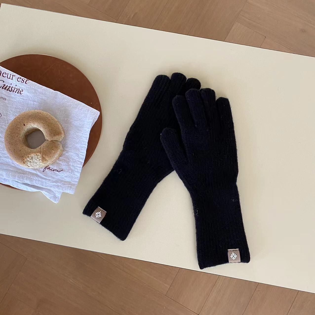 2024 겨울 새 한국 구매 모직 단색 장갑 5 손가락 터치 스크린 장갑 숙녀 울 장갑스토어 가기