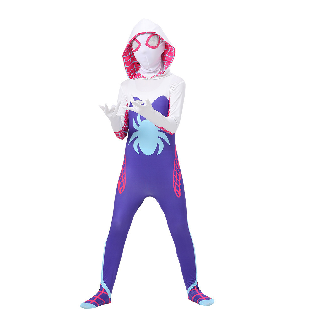 그웬 스파이더맨 여성용 점프수트 어린이용 평행 스파이더맨 코스튬 성인 코스프레 의상
