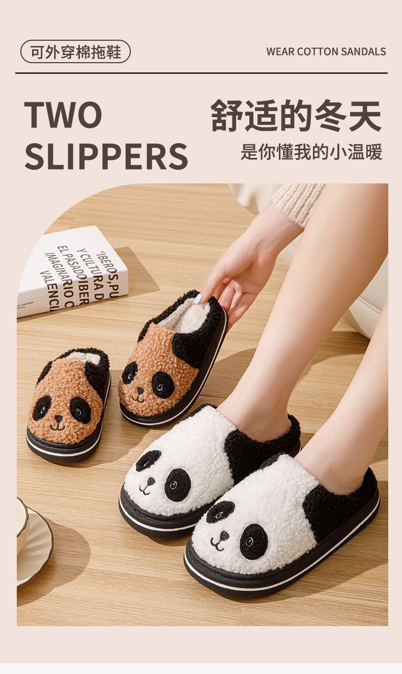 가을과 겨울 어린이 면 슬리퍼 큰 어린이 신발 마오 기모 두꺼운 단독 실내 미끄럼 방지 따뜻한 팬더 슬리퍼스토어 가기