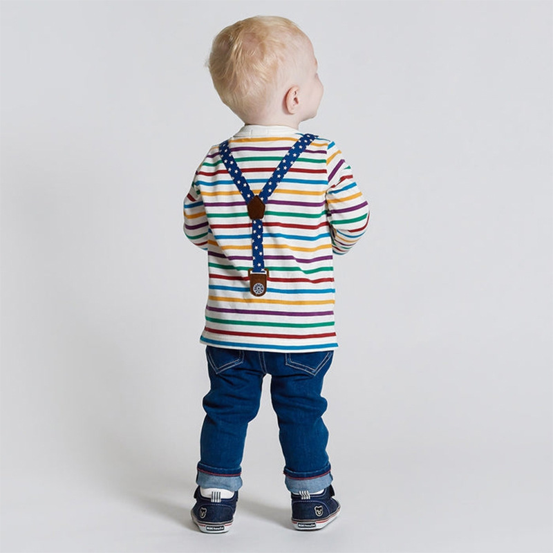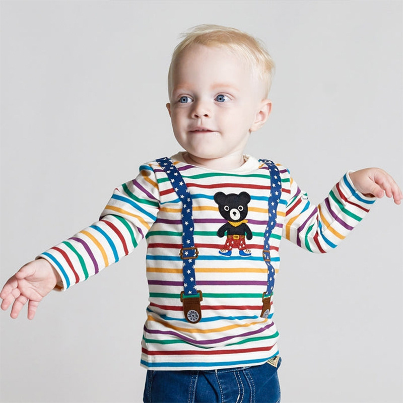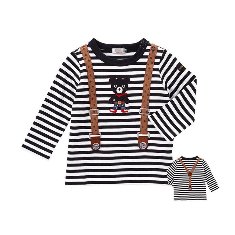 미키 아동면 긴팔 티셔츠 봄과 가을 줄무늬베이스 셔츠 소년 소녀를위한 새 줄무늬 긴팔 셔츠