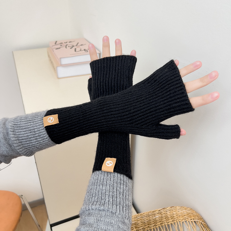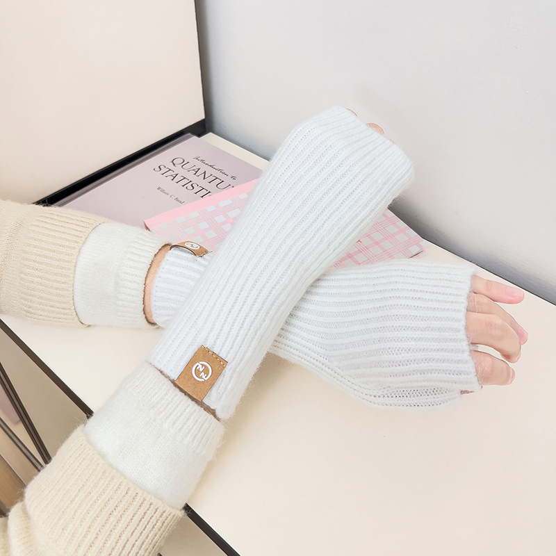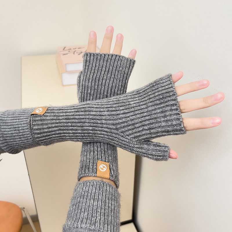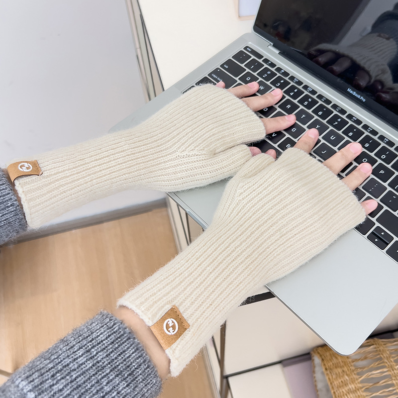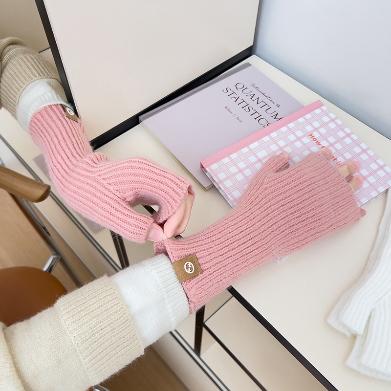 사용자 정의 새로운 따뜻한 긴 나사 반 손가락 장갑 한국 스타일 귀여운 승마 쓰기 터치 스크린 겨울 니트 장갑