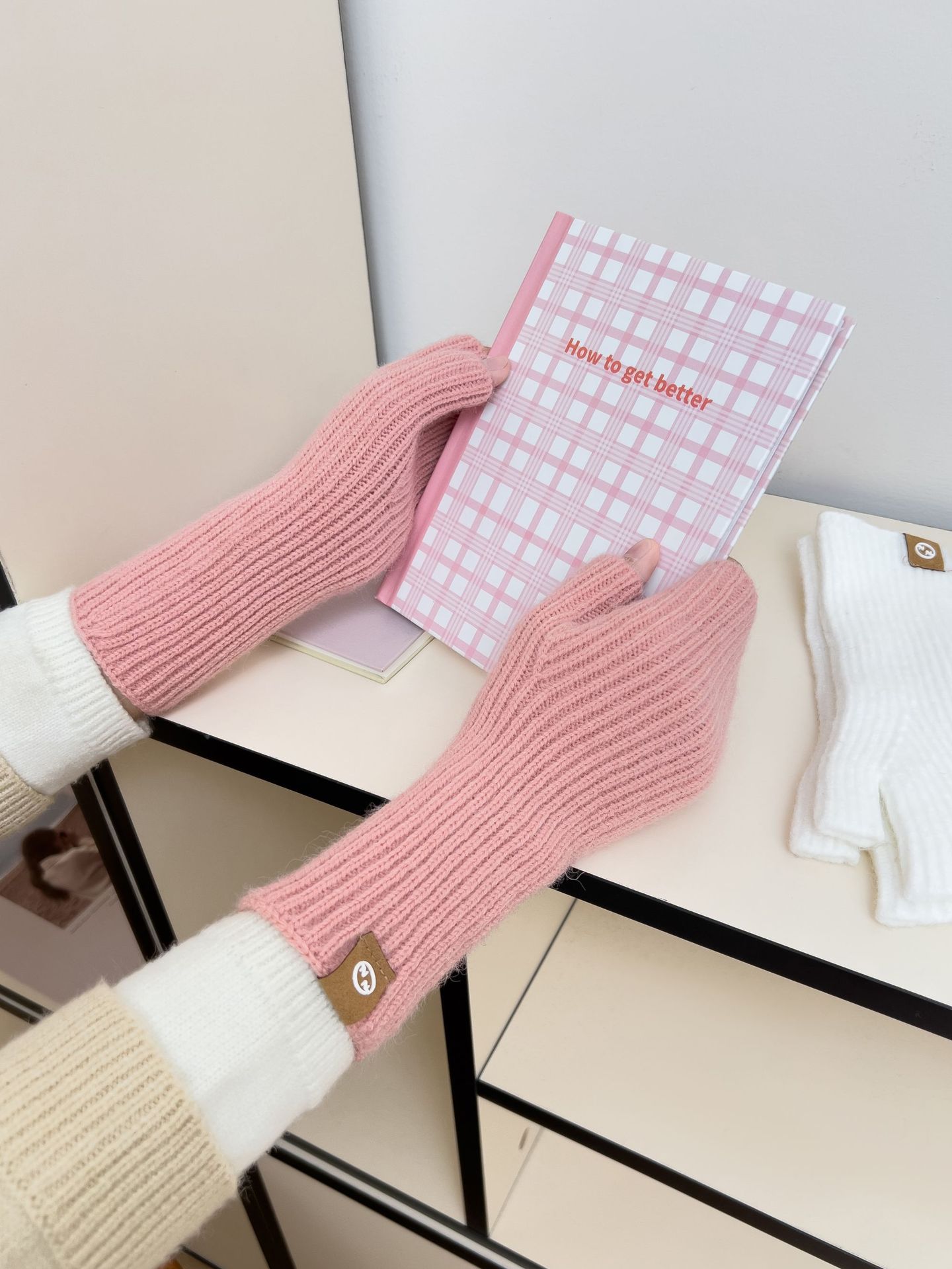 사용자 정의 새로운 따뜻한 긴 나사 반 손가락 장갑 한국 스타일 귀여운 승마 쓰기 터치 스크린 겨울 니트 장갑스토어 가기