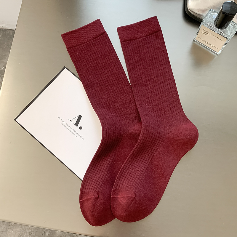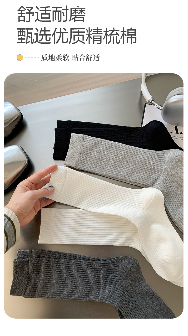 단색 심플 양말 여성 미드 튜브 양말 2024 봄과 가을 뼈없는 여성의 일치 슬리밍 새로운 스포츠 스타킹스토어 가기