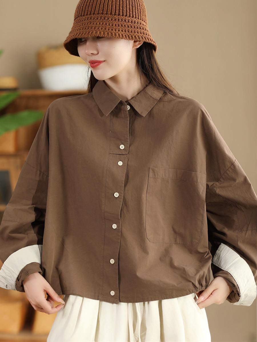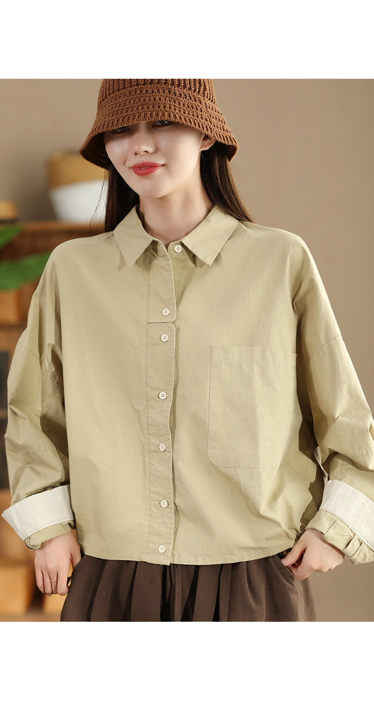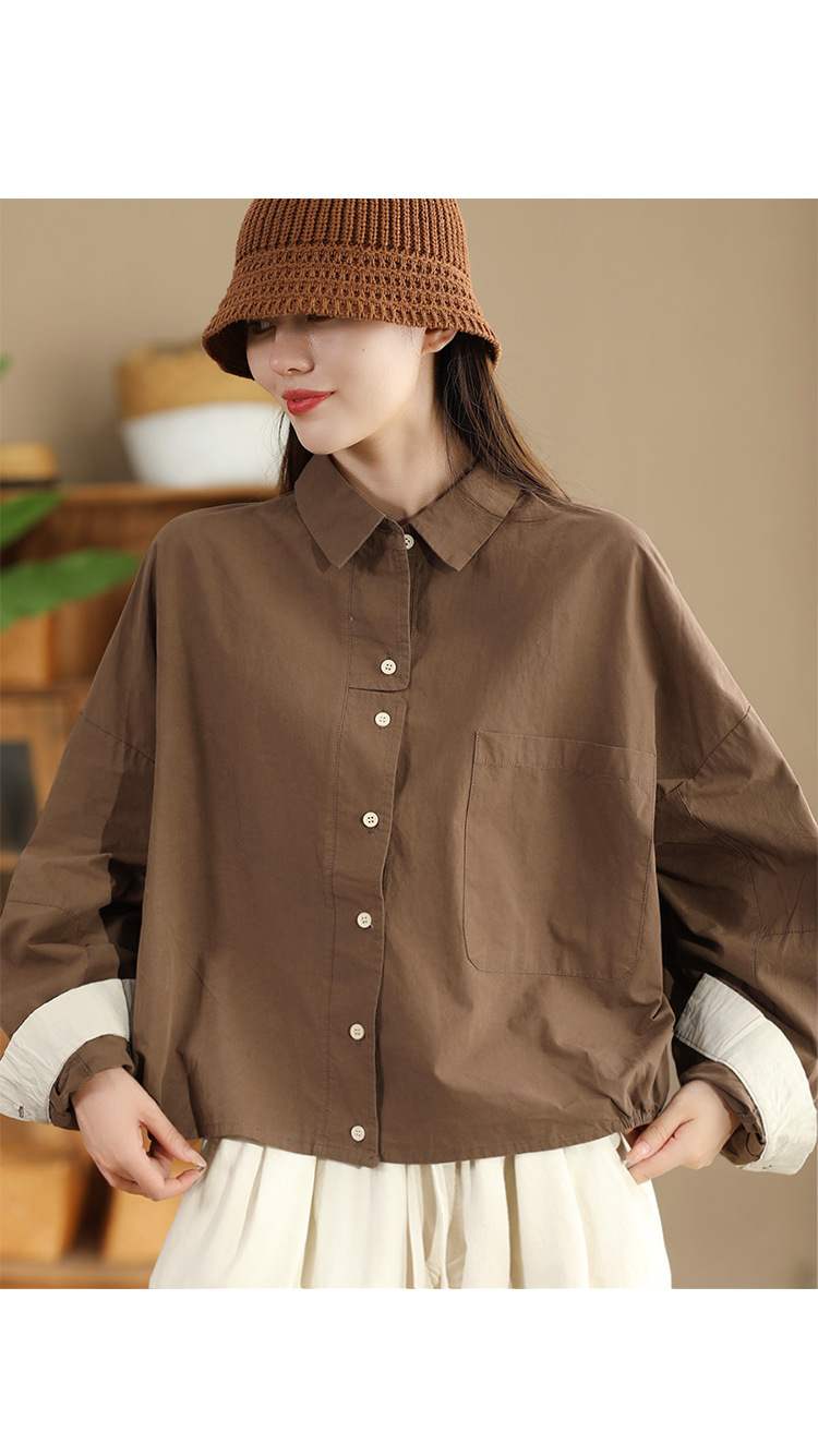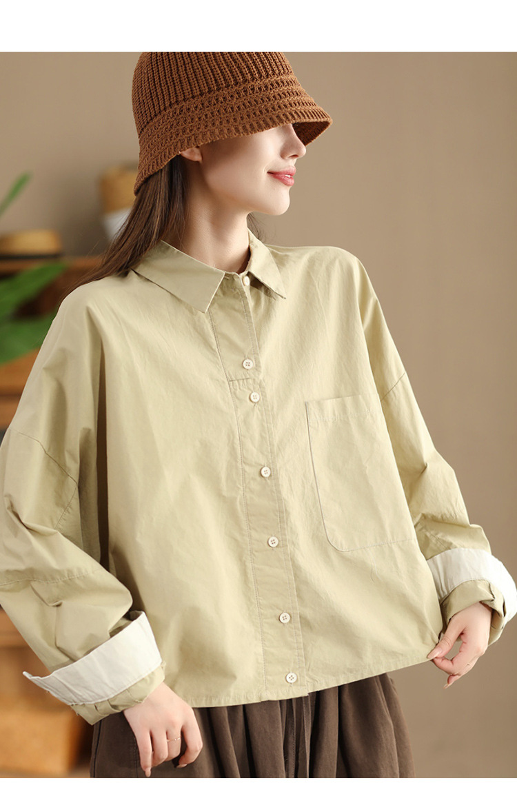 제나라 새겨진 드로잉 복고밀도 셔츠 코트 여성용 옷깃 컬러와 어울리는 긴소매 탑 캐주얼 카디건 외관