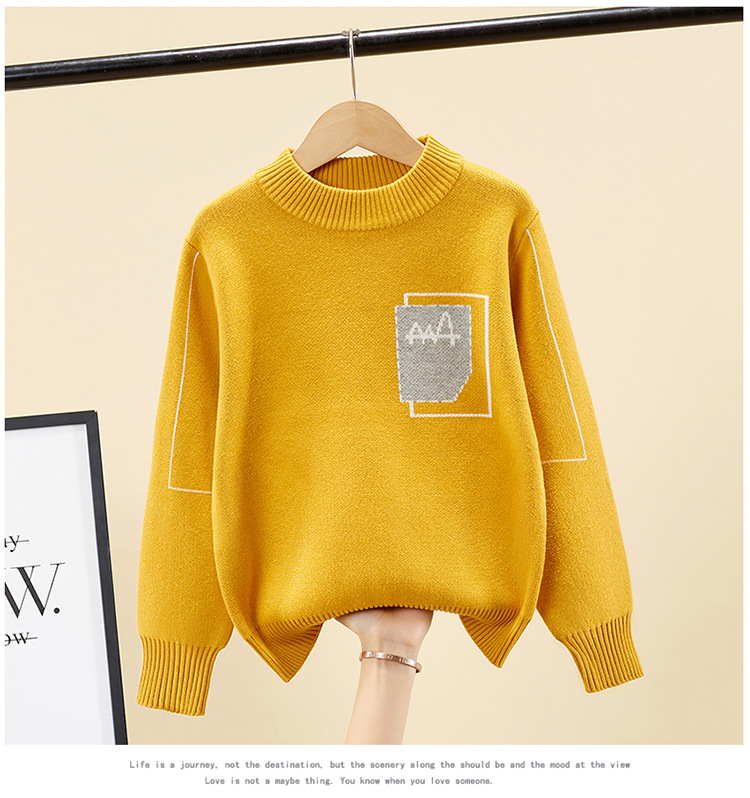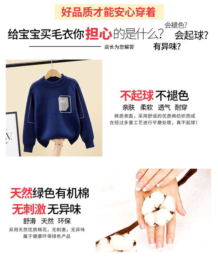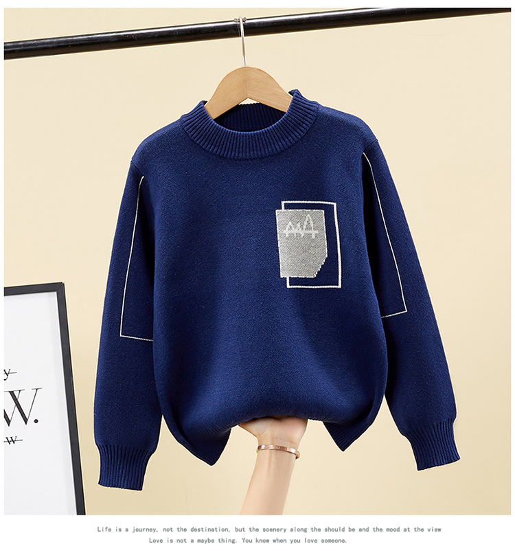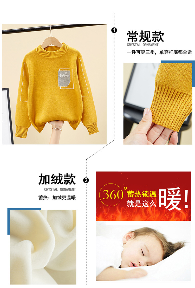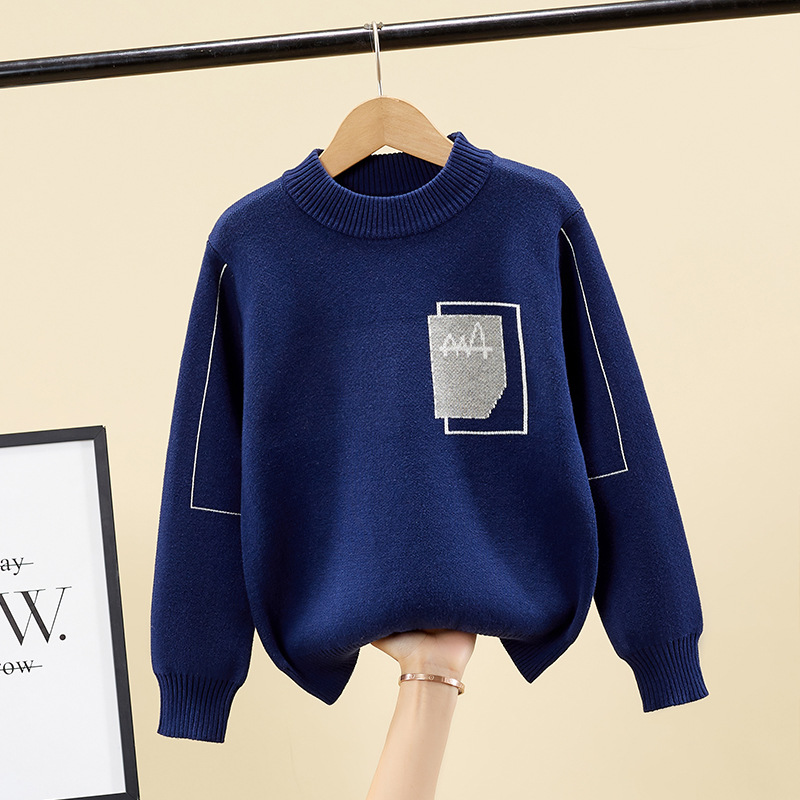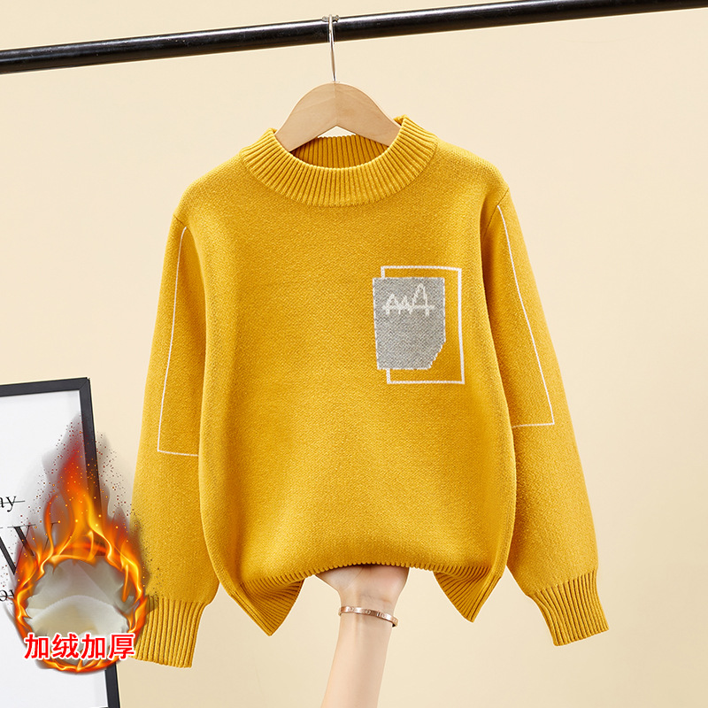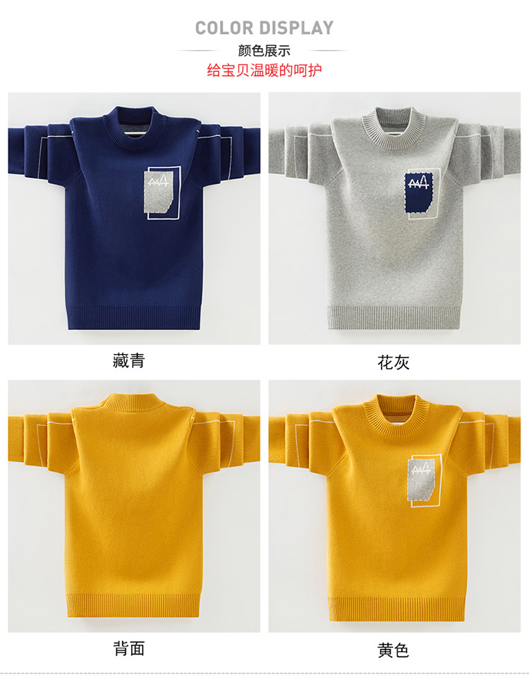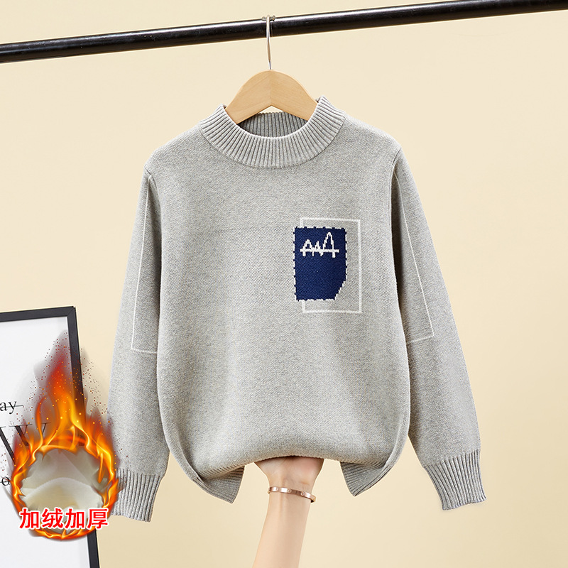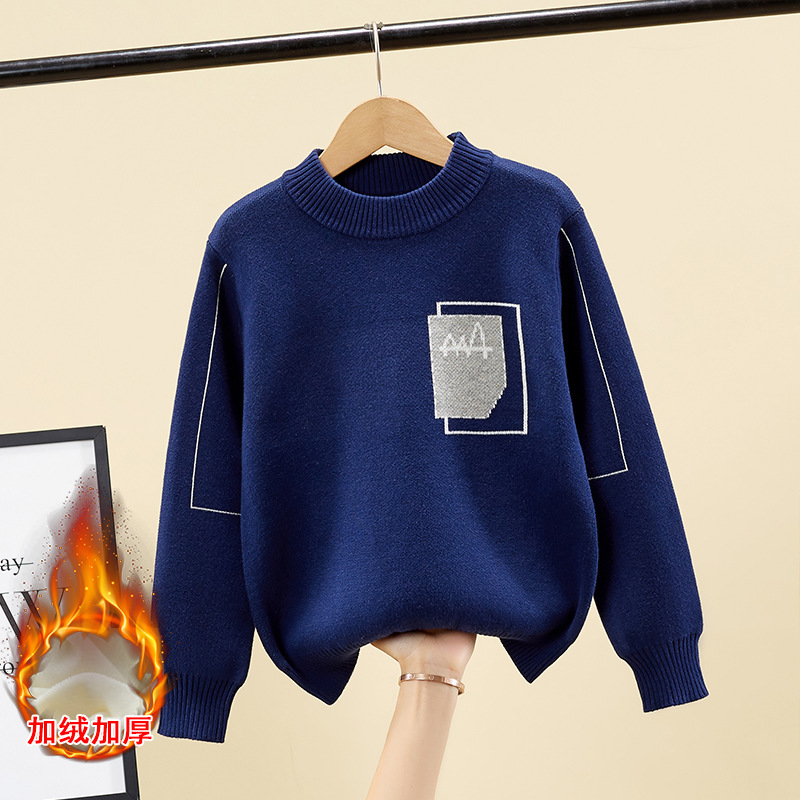 소년 스웨터 봄과 가을 어린이 순면 스웨터 뉴 스타일 미드 빅 보이 서양식 가을과 겨울 기모 두꺼운 니트 스웨터