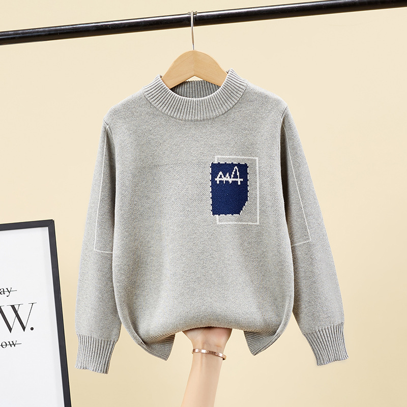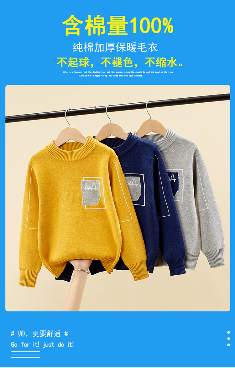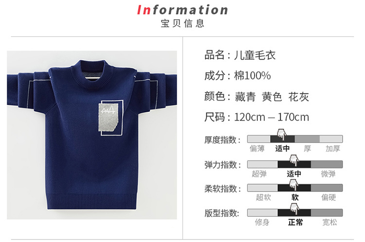 소년 스웨터 봄과 가을 어린이 순면 스웨터 뉴 스타일 미드 빅 보이 서양식 가을과 겨울 기모 두꺼운 니트 스웨터스토어 가기