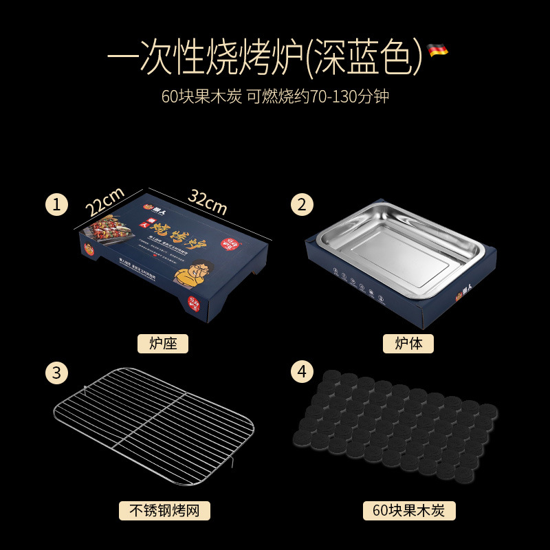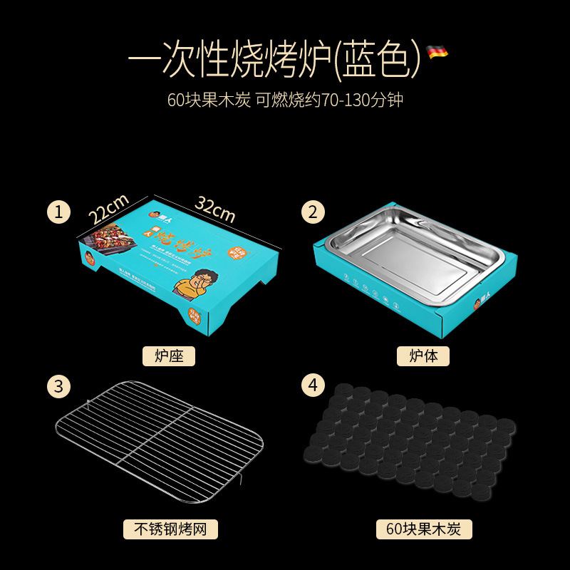 • 일회용 바베큐 그릴: 진한 파란색(숯 60개 포함)