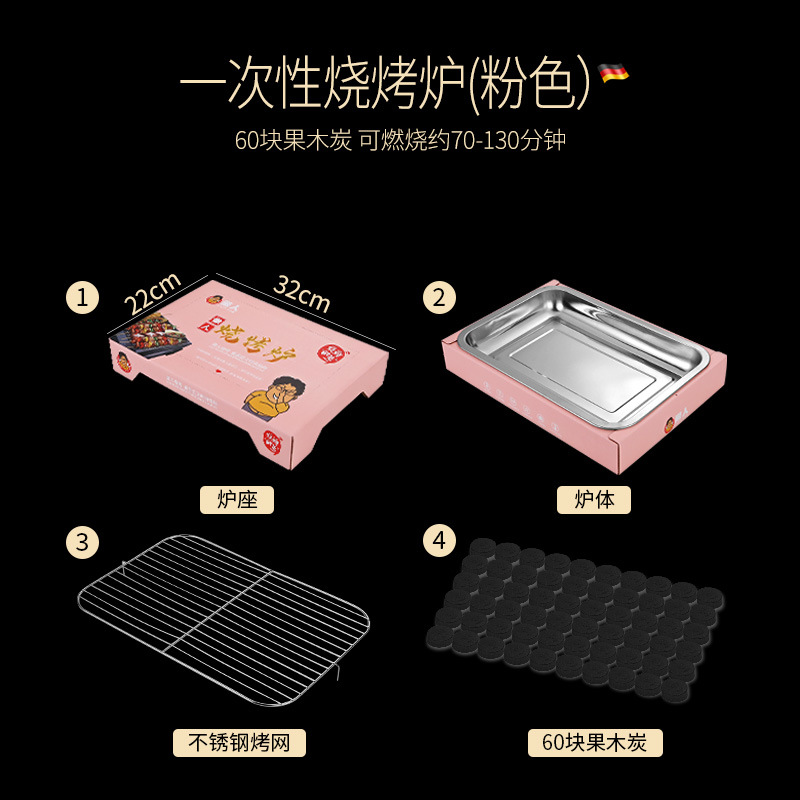 • 일회용 바베큐 그릴: 핑크(숯 30개 포함)